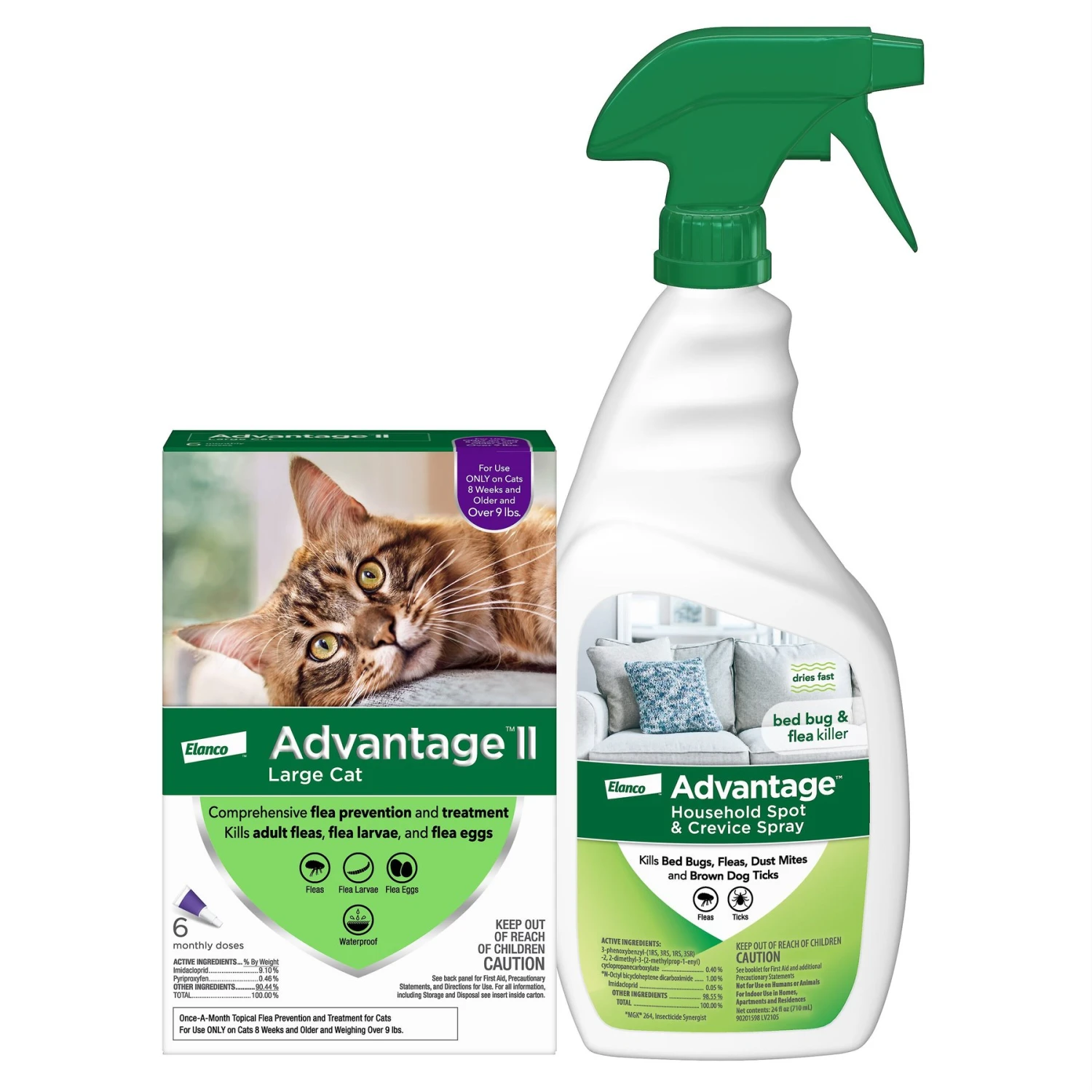 Advantage II Flea Spot Treatment For Cats, Over 9 Lbs & Advantage Household Spot & Crevice Spray
