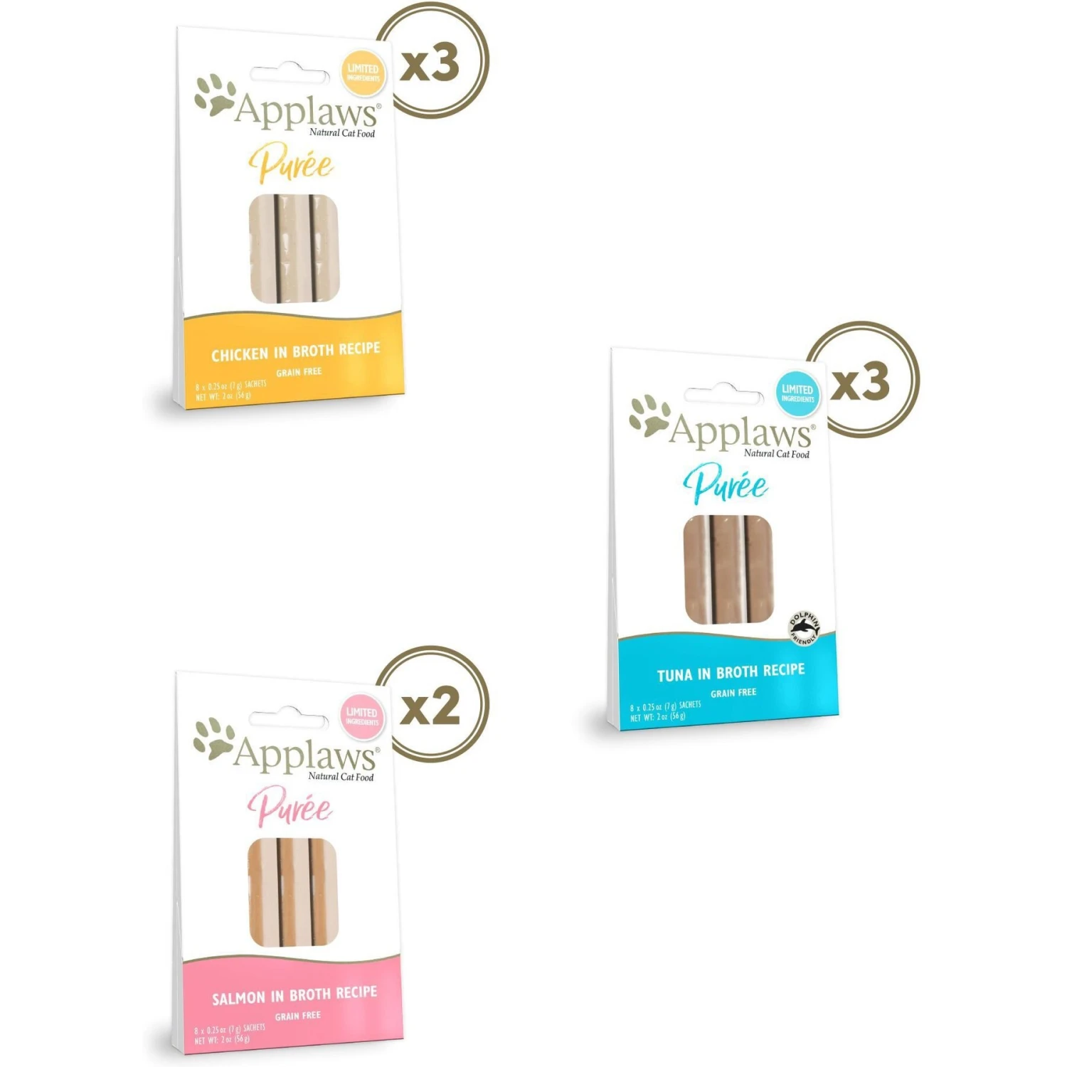 Applaws Puree Variety Pack Grain-Free Lickable Cat Treats, 8 Count, 0.25oz Pouch, Case Of 10