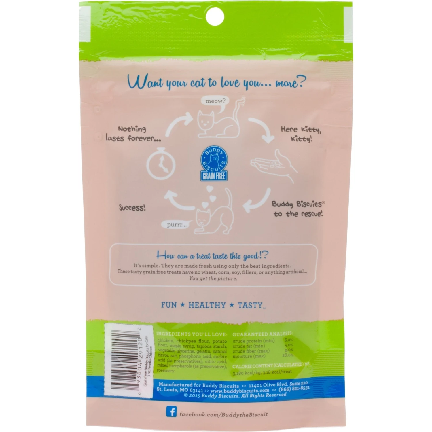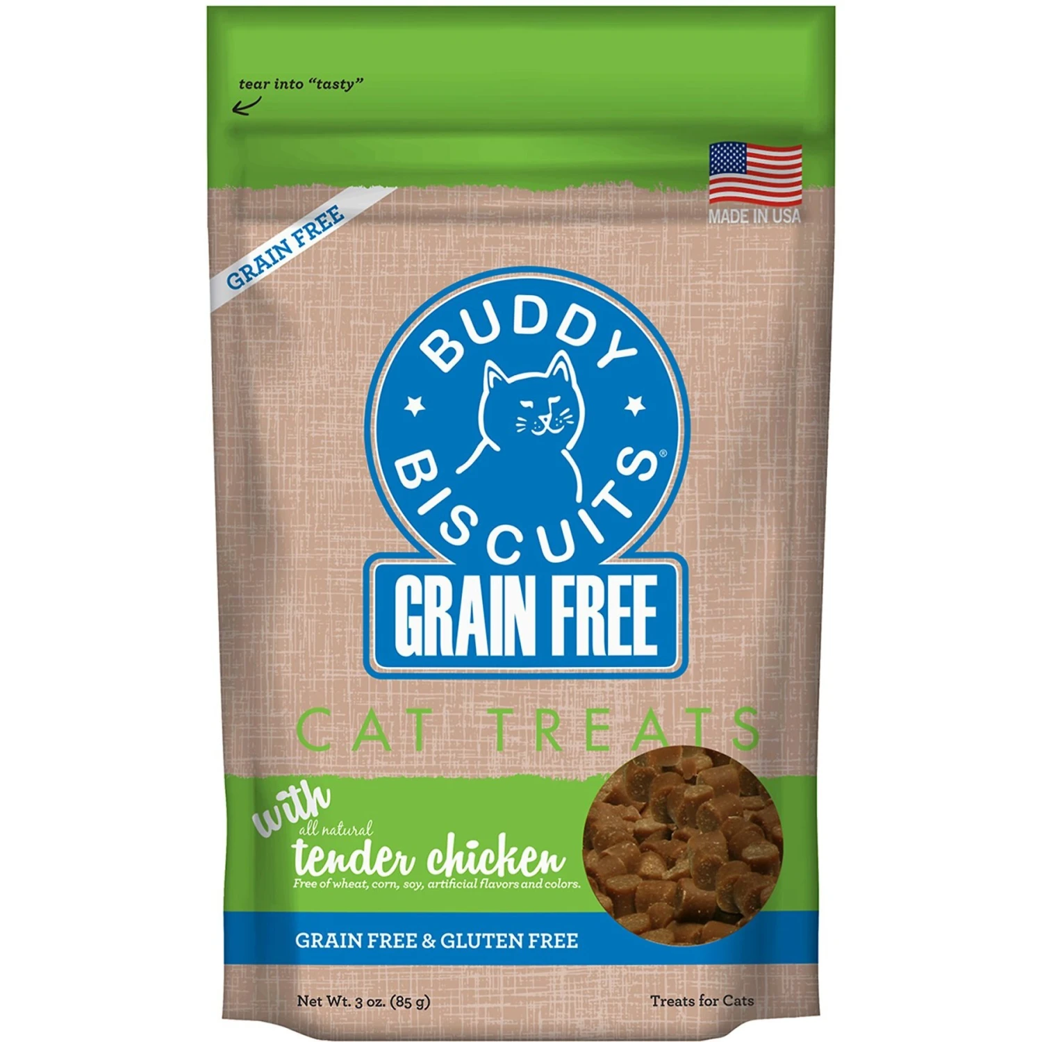 - Buddy Biscuits cat treats come in a resealable bag so you can lock in the freshness for long-lasting fun.