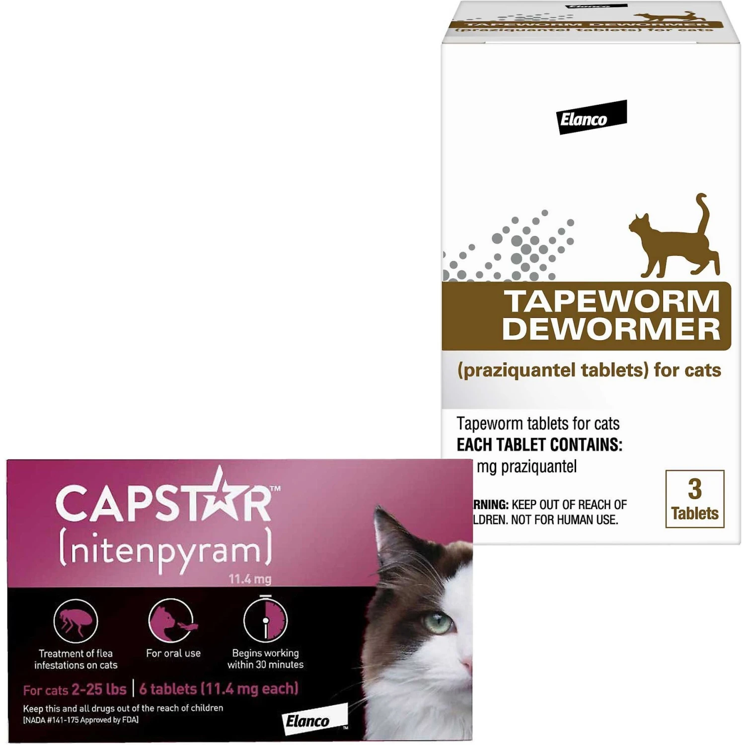 Capstar Flea Oral Treatment For Cats, 2-25 Lbs & Elanco Dewormer For Tapeworms For Cats