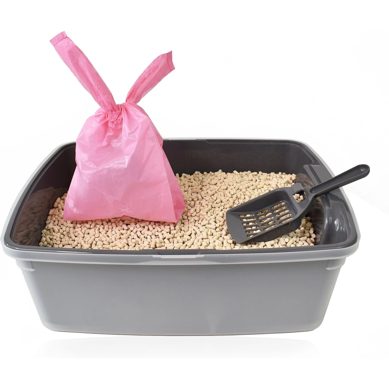 Doggie Walk Bags Citrus Scented Tie Handle Cat Litter Bags, Pink, 140 Count