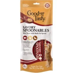 - This squeezable, lickable cat treat comes with a built-in spoon for more fun and less mess.