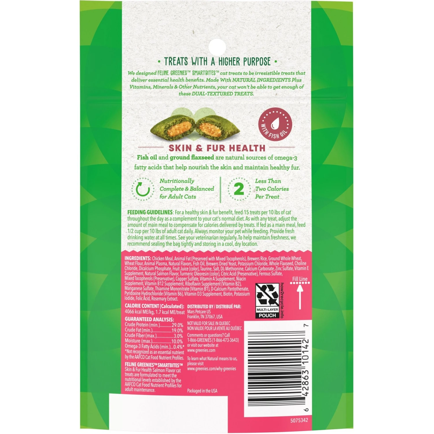 Greenies Feline SmartBites Healthy Skin & Fur Natural Salmon Flavor Soft & Crunchy Adult Cat Treats