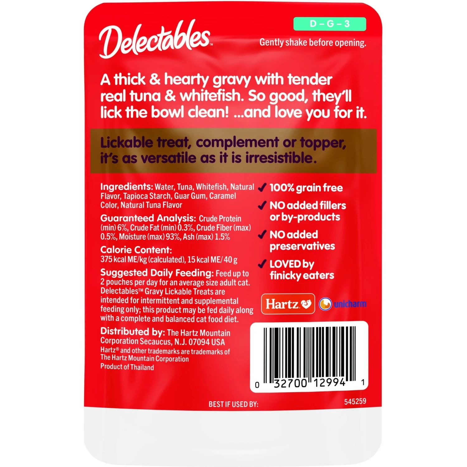 Hartz Delectables Gravy Tuna & Whitefish Lickable Cat Treats, 1.4-oz Tubes, 12 Count