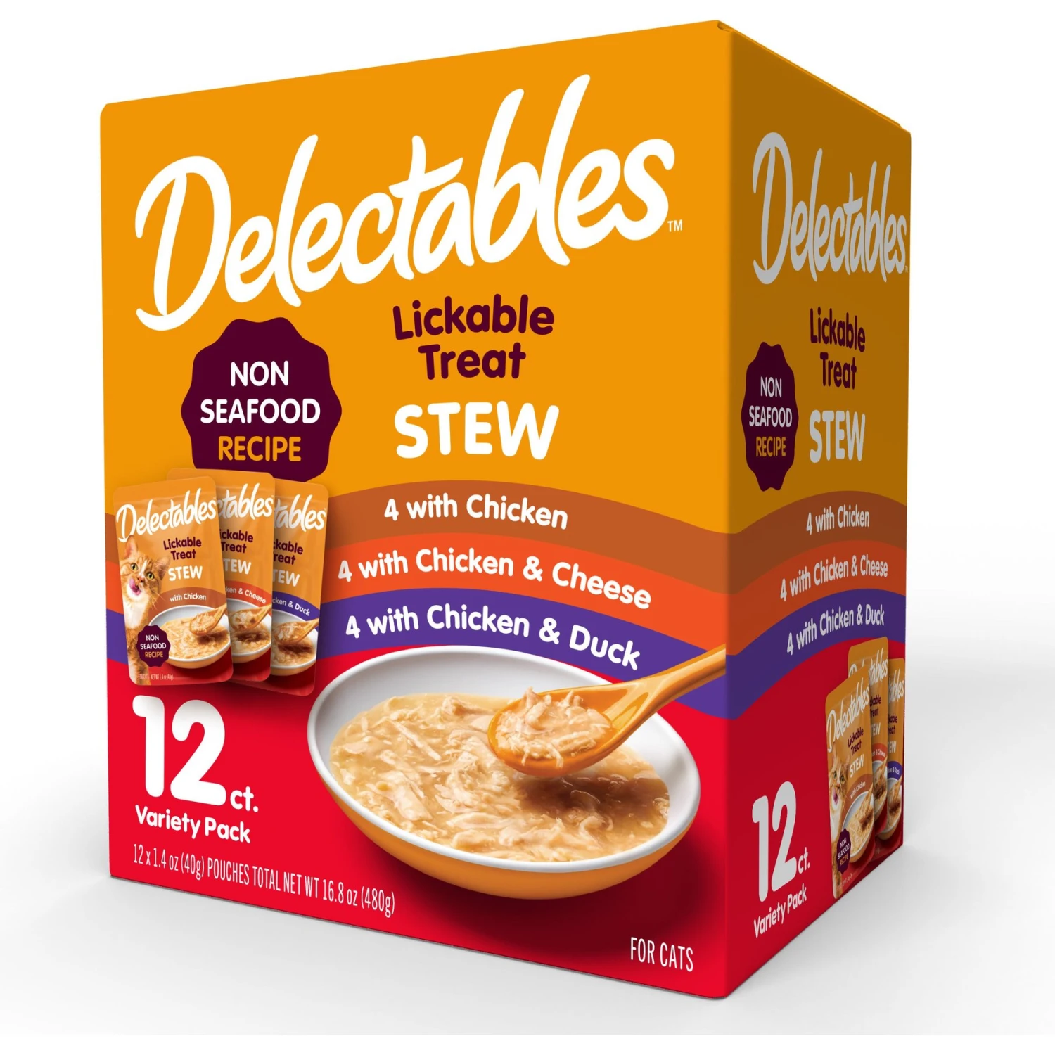 Hartz Delectables Non-Seafood Stew Variety Pack Lickable Cat Treats, 1.4-oz Pouch, 12 Count