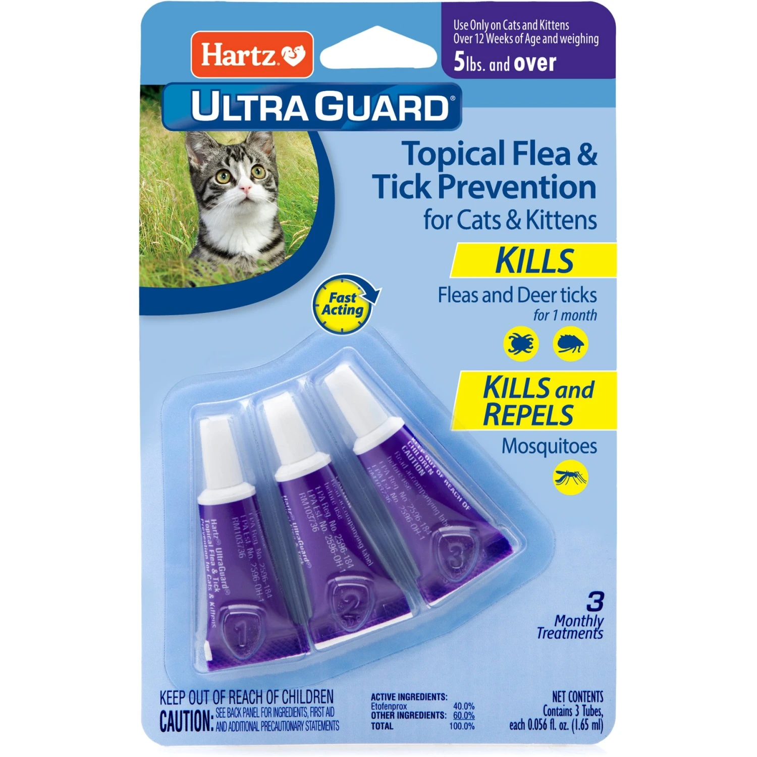 Help keep your feline friend protected from bothersome pests with Hartz UltraGuard Topical Flea & Tick Prevention. For cats and kittens over 12 weeks old and weighing five pounds and over, this treatment is formulated to help prevent and control flea larvae and flea eggs for up to 30 days! It can also help prevent re-infestation for up to one month, kill fleas and deer ticks for up to one month and kill and repel mosquitoes—that’s a whole lot of protection!