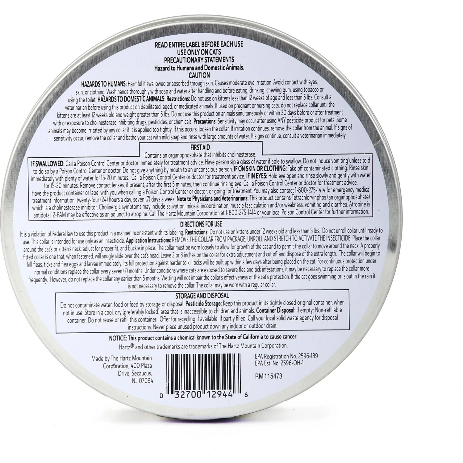 Place the collar around the cat’s neck, adjust for proper fit, and buckle in place. The collar must be worn loosely to allow for growth of the cat and to permit the collar to move about the neck. A properly fitted collar is one that, when fastened, will snugly slide over the pet’s head. Leave 2 or 3 inches on the collar for extra adjustment cut off and dispose of the extra length. Consult a veterinarian before using this product on debilitated, aged or medicated animals. If used on pregnant or nursing cats, do not replace collar until the kittens are at least 12 weeks old. Sensitivity may occur after using ANY pesticide product for pets. Some animals may become irritated by any collar if it is applied too tightly. If this occurs loosen the collar. If irritation continues, remove the collar from the animal. If signs of sensitivity occur, remove the collar and bathe your pet with mild soap and rinse with large amounts of water. If signs continue, consult a veterinarian immediately. Do not use this product on animals simultaneously or within 30 days before or after treatment with or exposure to cholinesterase inhibiting drugs, pesticides or chemicals. However, flea and tick collars may be immediately replaced.