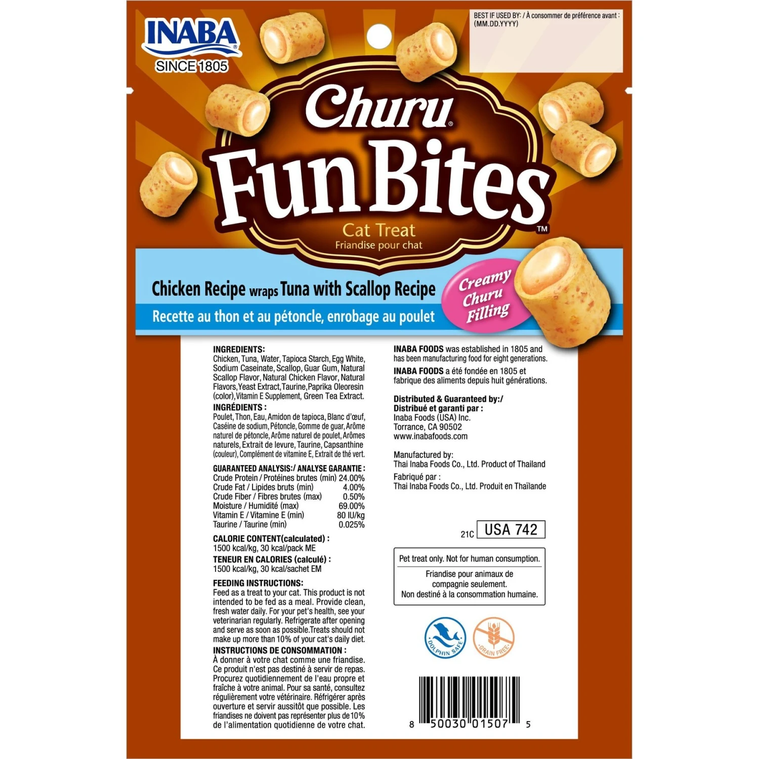 Inaba Cat Churu Fun Bites Chicken, Tuna, & Scallop Flavored Wraps Natural Chewy Cat Treats, 2.1-oz, 3 Count