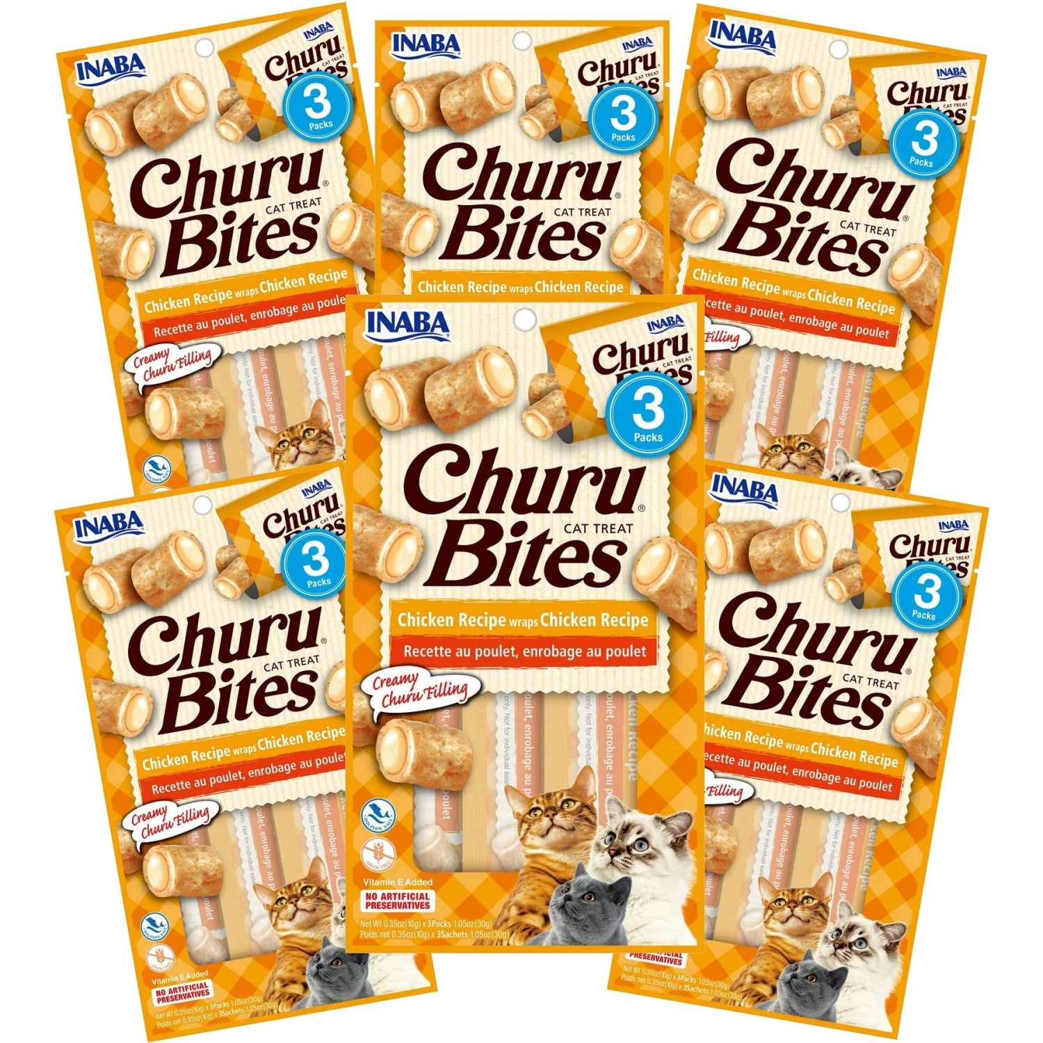 Inaba Churu Bites Chicken Recipe Wraps Chicken Recipe Grain-Free Cat Treats, 0.35-oz, Pack Of 3