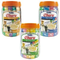 Inaba Churu Tuna & Chicken Varieties Puree Grain-Free Lickable Cat Treat, 0.5oz tube, pack of 50—Treat your favorite feline to the scrumptious flavors and wholesome nutrition of Inaba’s Churu Tuna & Chicken Puree Variety Pack. It comes with 50 individually wrapped tubes of creamy, purr-worthy puree in five lip-smacking flavors—Tuna, Tuna with Chicken, Tuna with Salmon, Chicken and Chicken with Cheese. Each recipe is rich in moisture, so your paw-tner can get the hydration she needs in her diet to support her overall health. And with zero grains, artificial preservatives or colors, you can feel good feeding Inaba’s lickable cat treats to your furry purr-incess! Simply tear the tube open and squeeze to feed by hand, pour in a bowl or use as a tasty topper for your kitty’s favorite kibble.