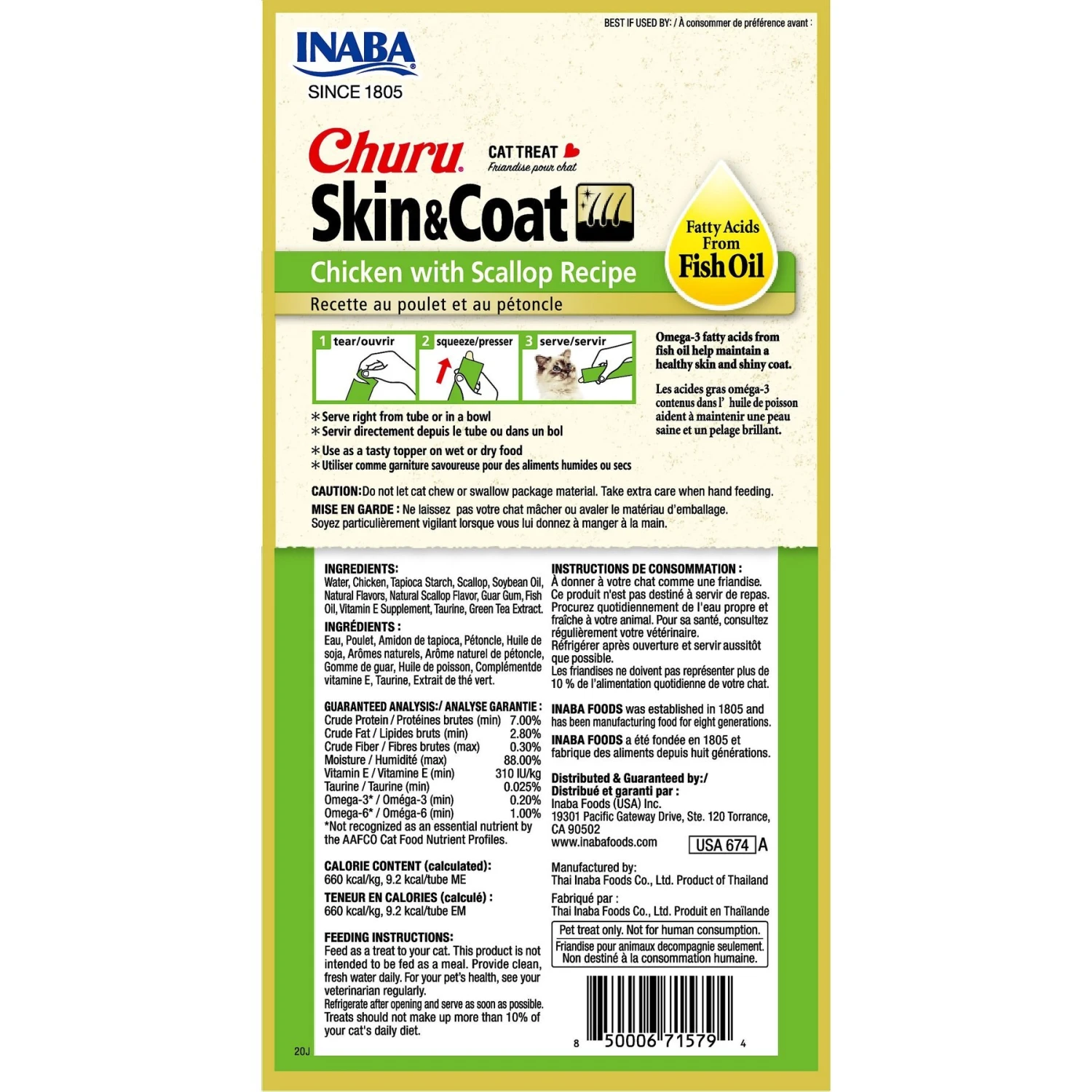 Inaba Churu Grain-Free Skin & Coat Chicken With Scallop Recipe Lickable Cat Treat, 24 Count