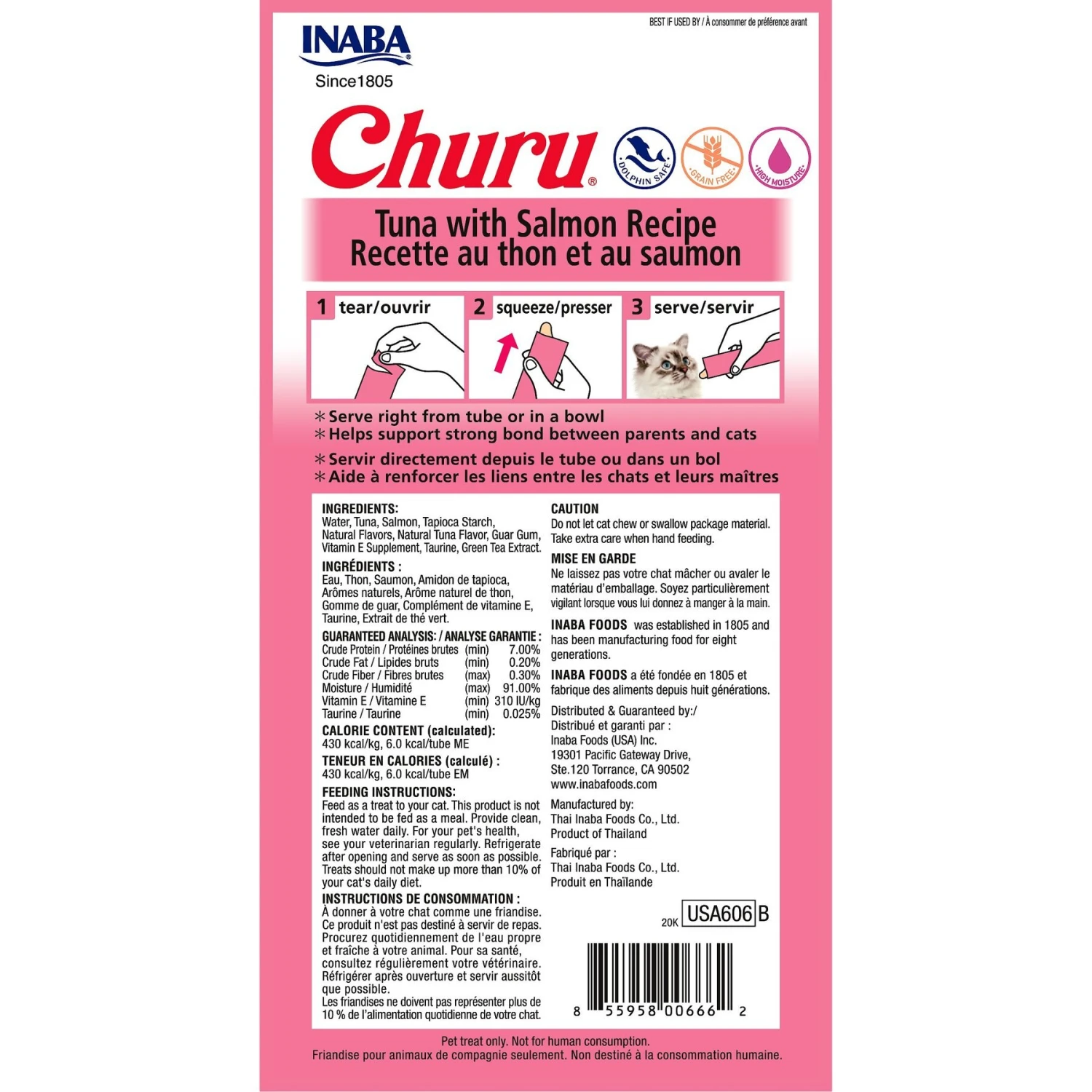 - Every Inaba product is made with yummy, high-quality ingredients including farm-raised chicken and/or wild-caught tuna.