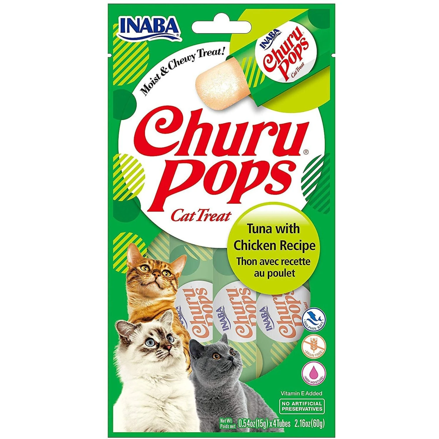 - Grain-free treats that come individually wrapped in tubes for you to tear open and give to your kitty.