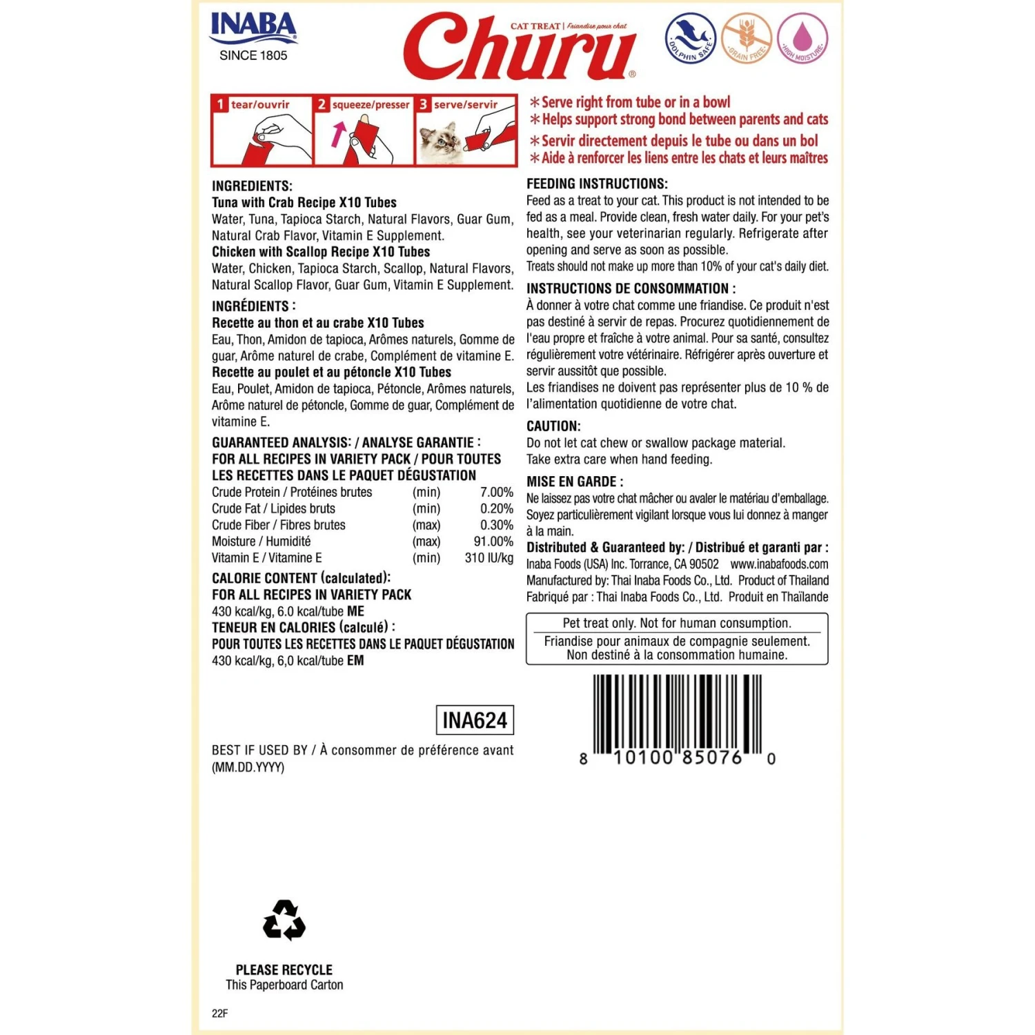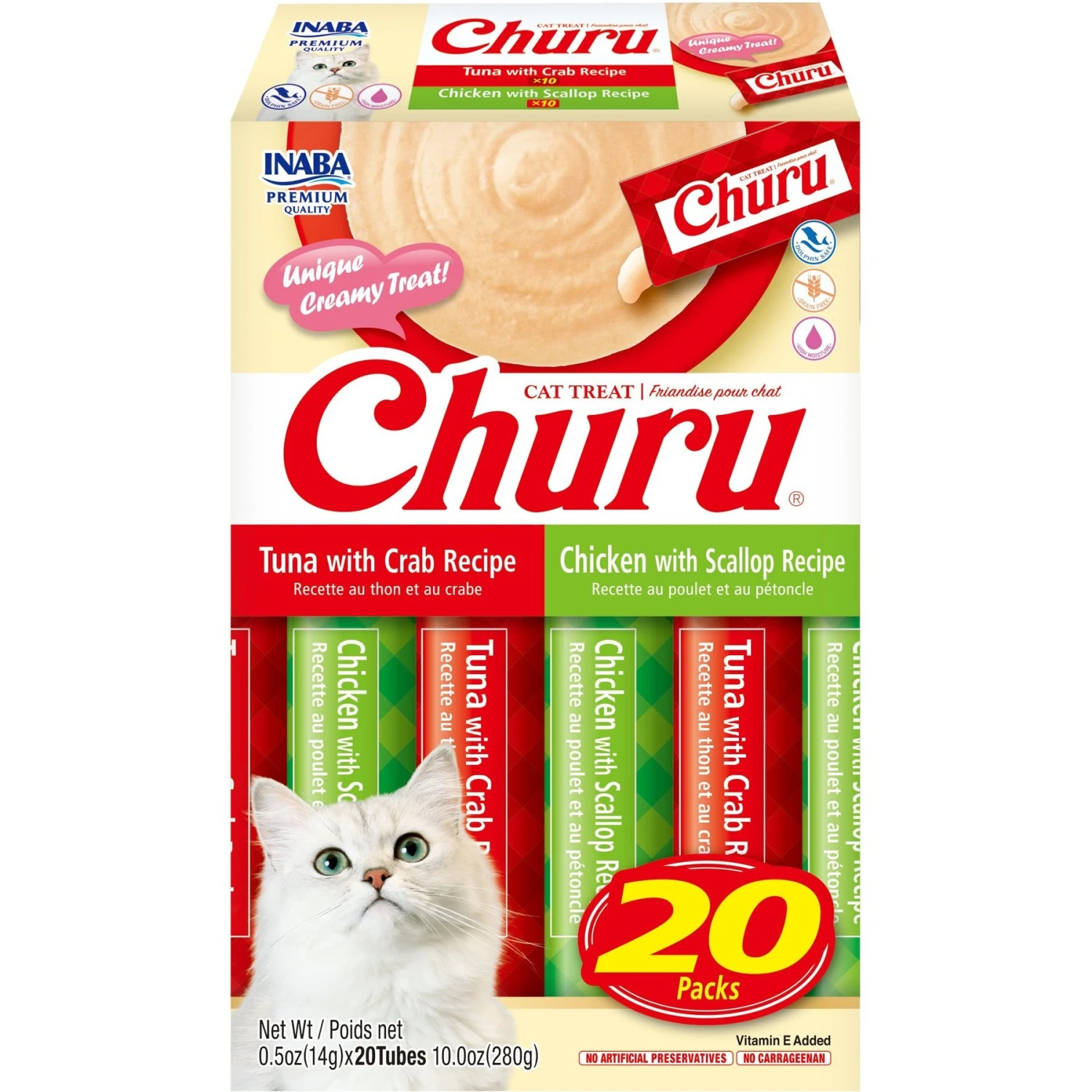 Inaba Churu Seafood & Chicken Variety Pack Grain-Free Lickable Cat Treats, 0.5-oz Tube, 20 Count