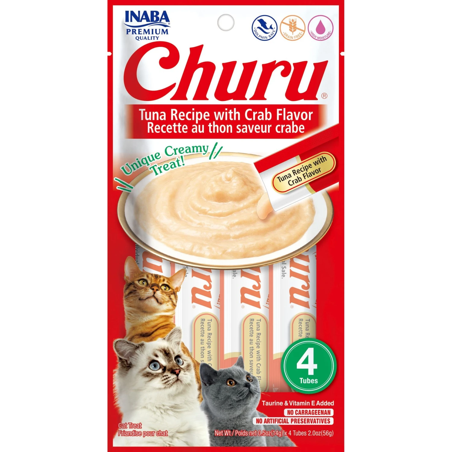 Inaba Churu Tuna With Crab Recipe Creamy Puree Grain-Free Lickable Cat Treats