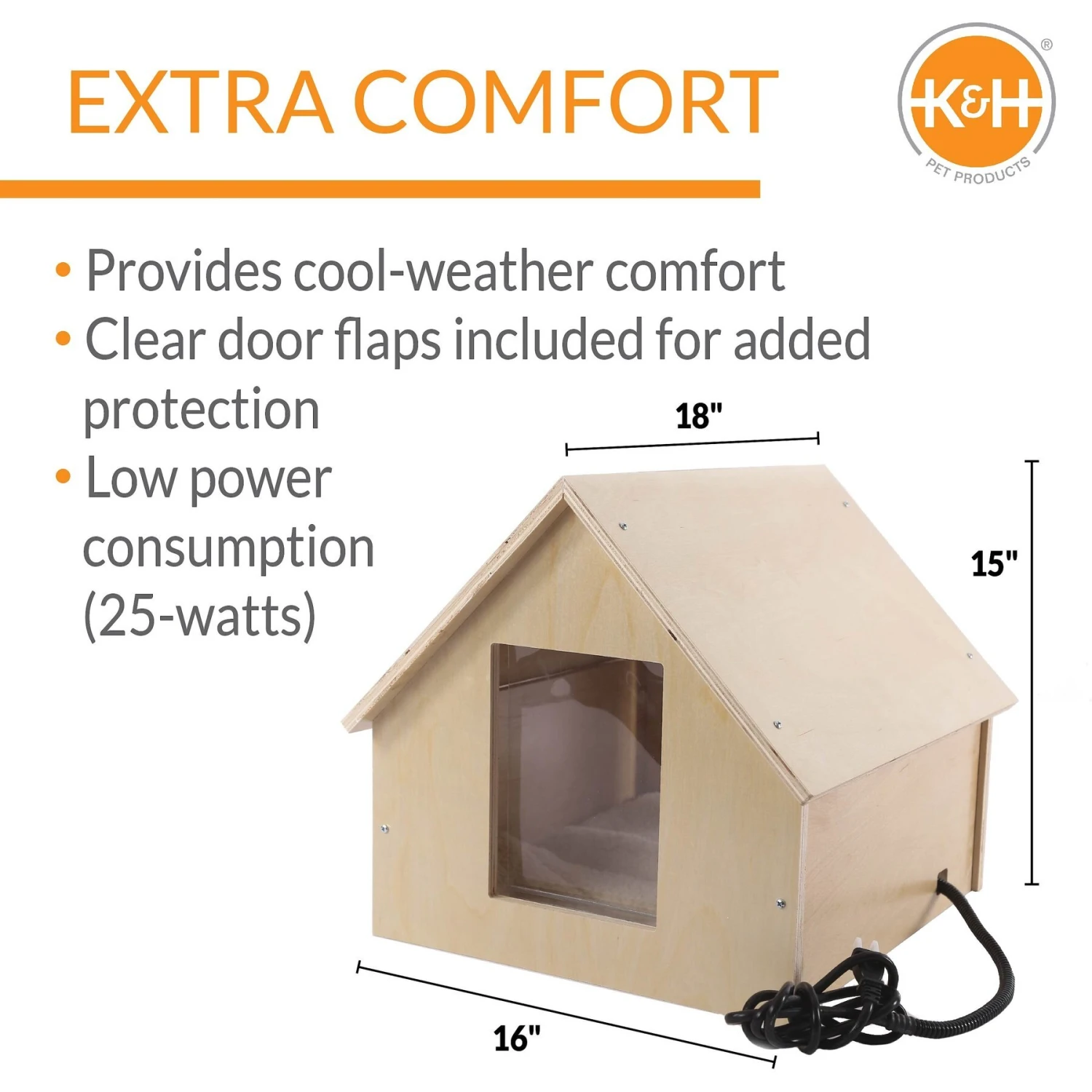 K&H Pet Products Birchwood Manor Wooden Outdoor Heated Cat House, Natural Wood