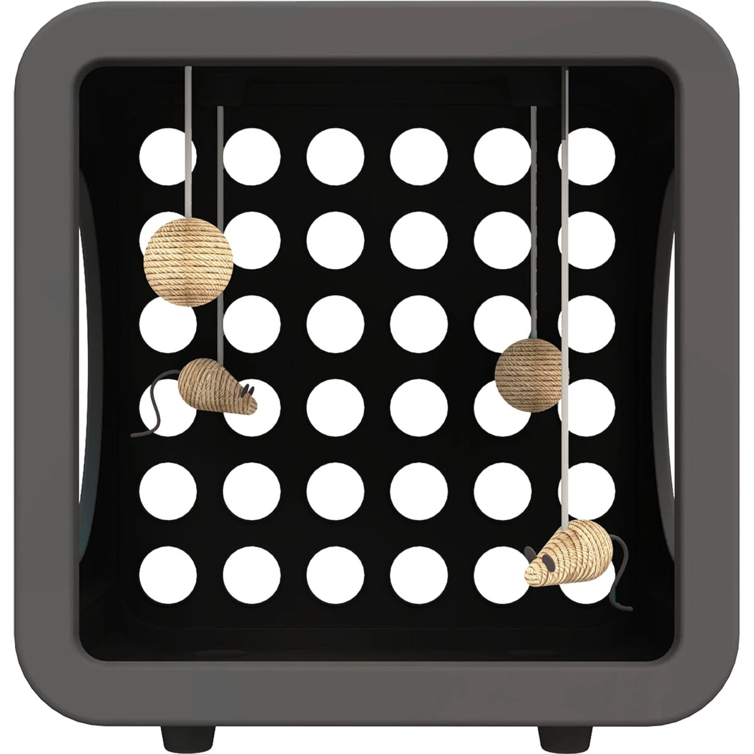 - Each order includes one Cat Gym Cube, four hanging cat toys, four Kitty Klips and four rubber feet.