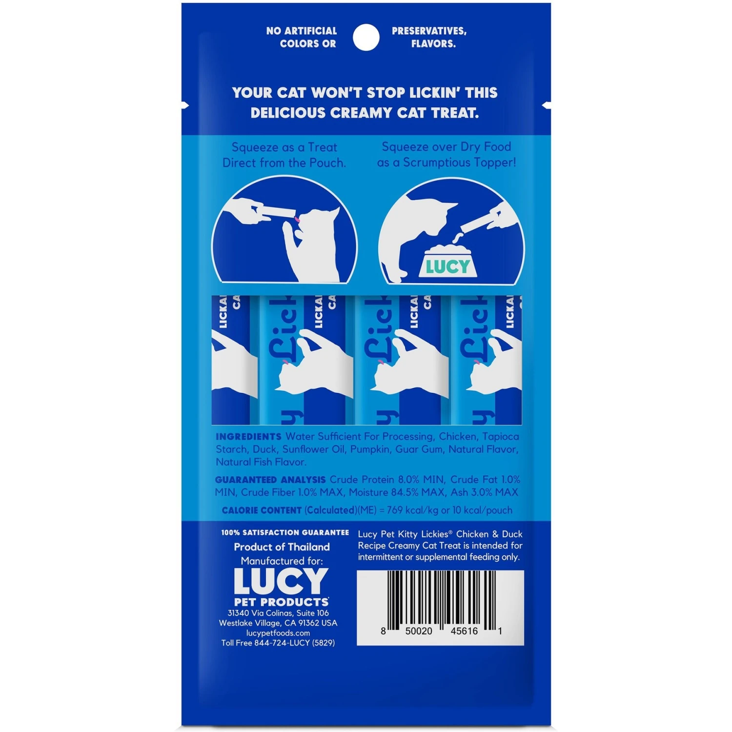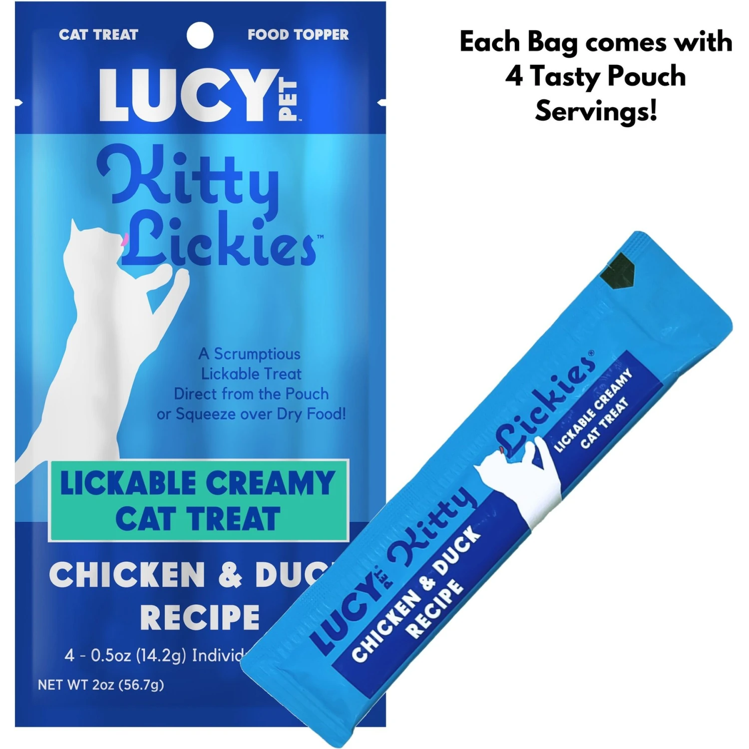 Lucy Pet Products Kitty Lickies Chicken & Duck Recipe Grain-Free Lickable Cat Treat, 0.5-oz Tube, 4 Count