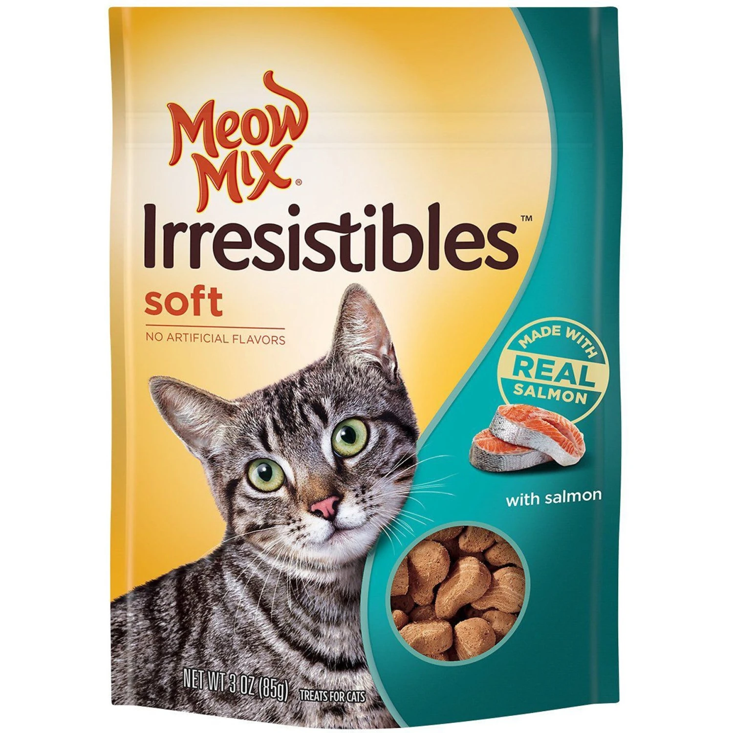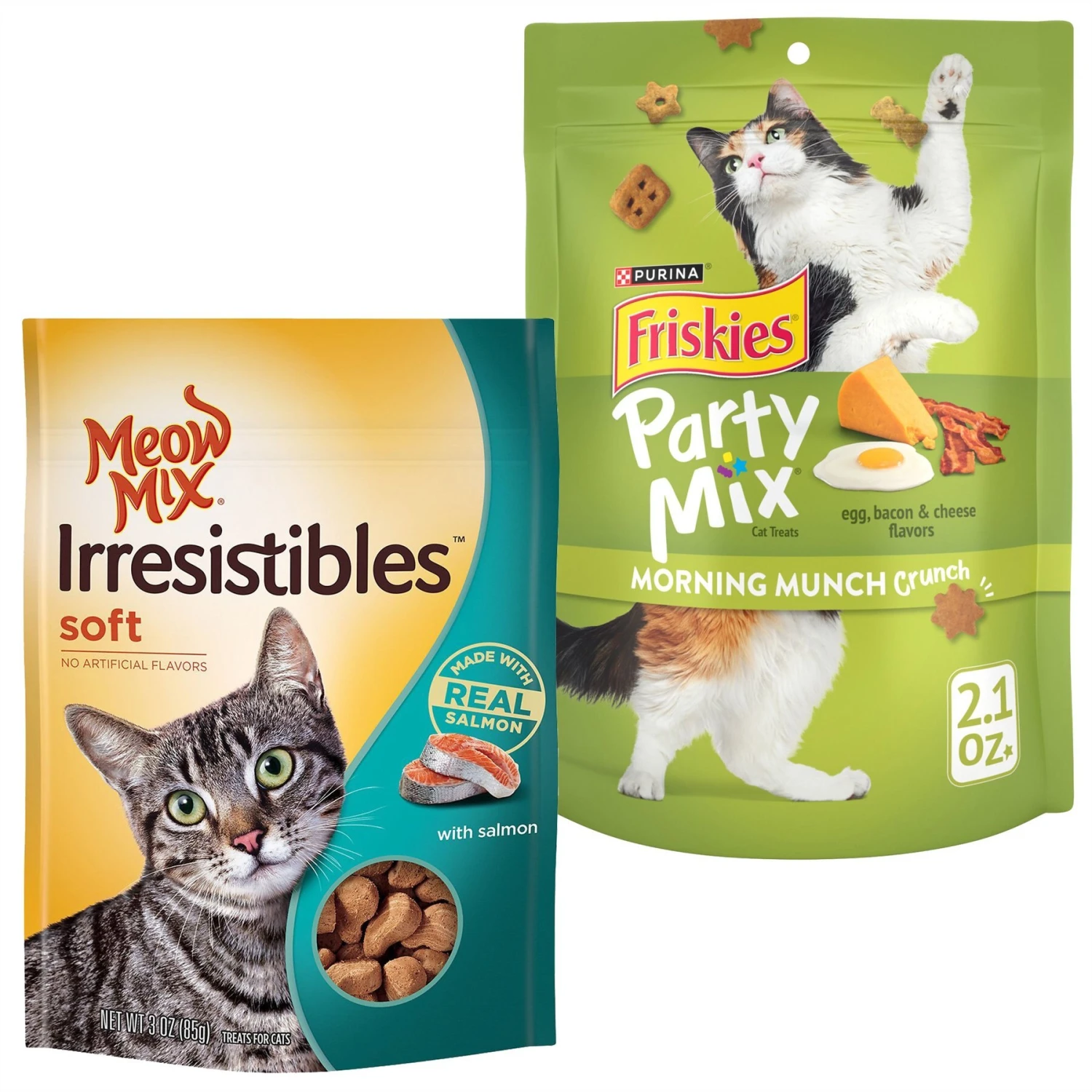 Meow Mix Irresistibles Soft Salmon Cat Treats & Friskies Party Mix Morning Munch Crunch Flavor Crunchy Cat Treats