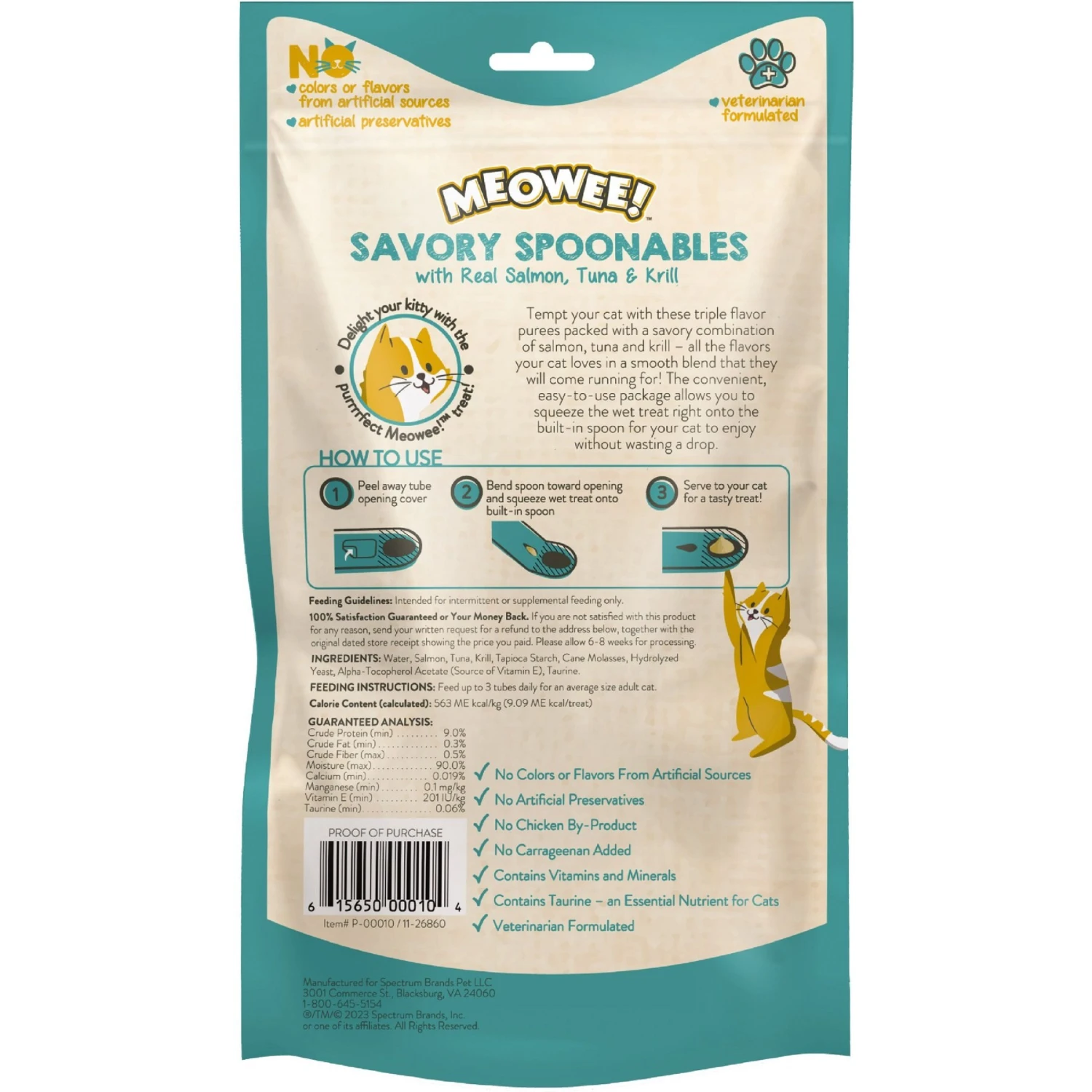 - This squeezable, lickable cat treat comes with a built-in spoon for more fun and less mess.