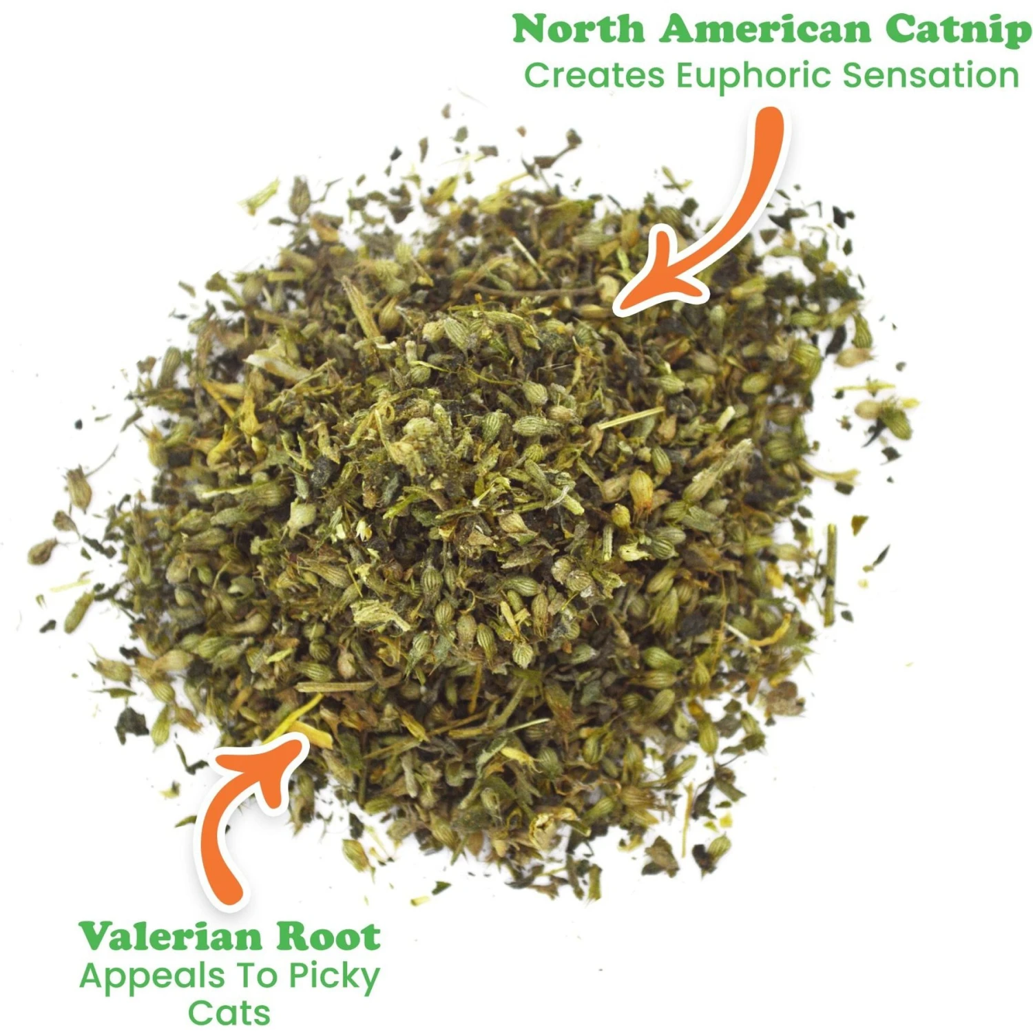 - These handy bottles are packed with premium catnip mixed with valerian root—made without preservatives, pesticides, fillers, or artificial ingredients.