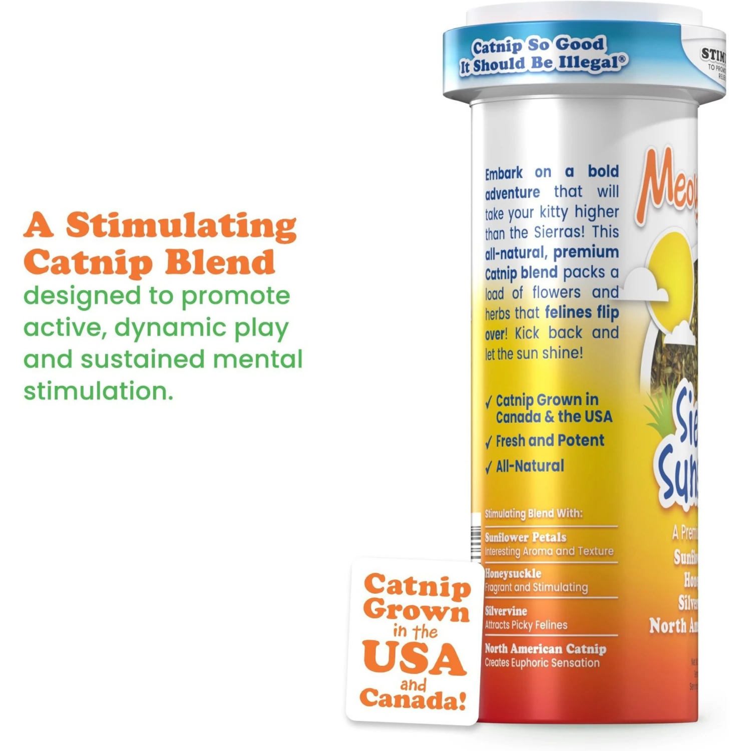 Meowijuana Sierra Sunshine Sunflower, Honeysuckle, Silvervine Catnip Blend, 26-gm Bottle