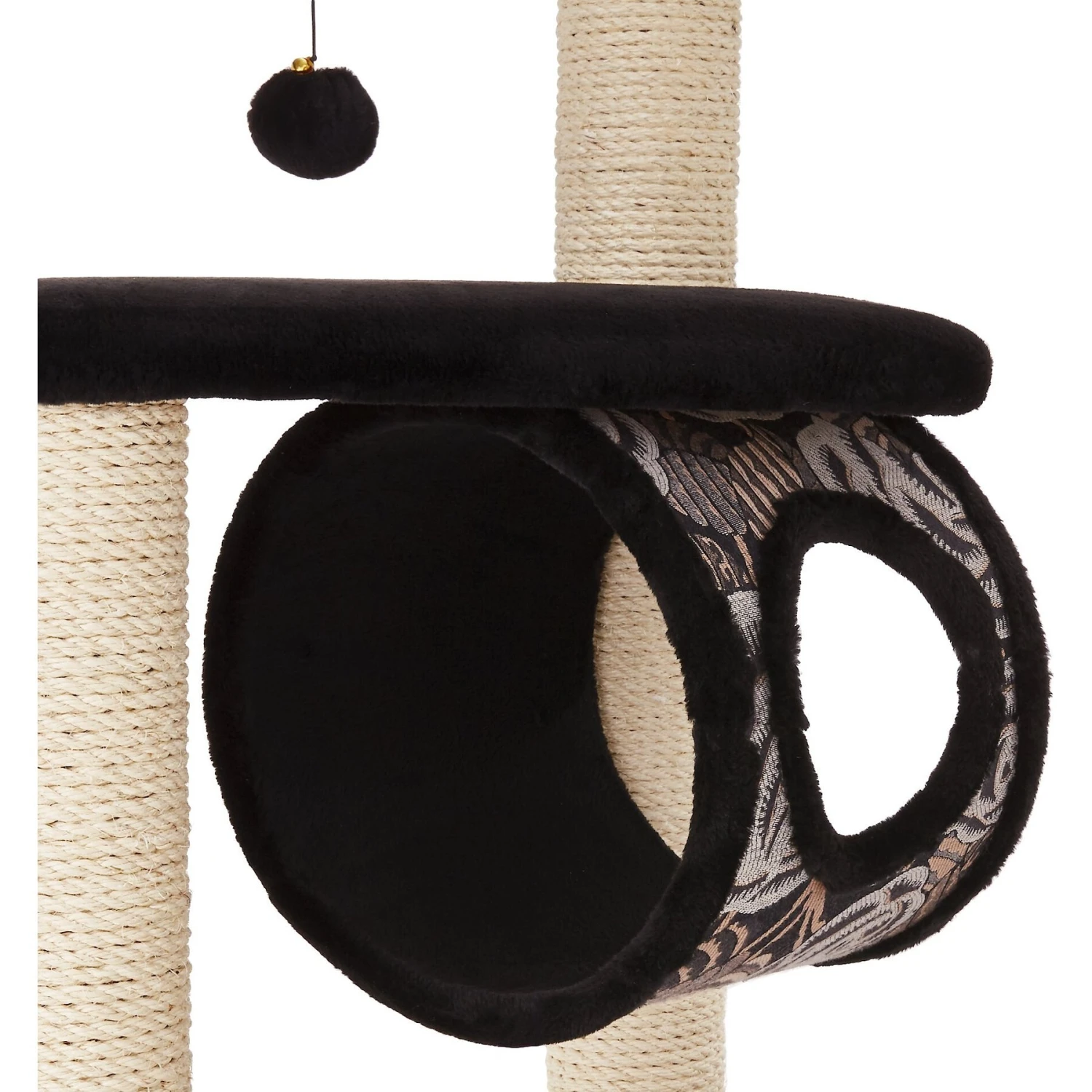 - 4-tier, multi-level cat tree features an ultra-soft faux fur with designer print fabric.