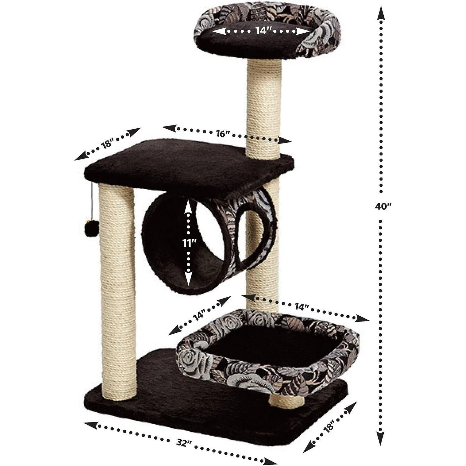 - Comes with a bolstered lounging perch, resting bench, lounging lookout and low-bolstered cat bed with tough sisal-wrapped supports.