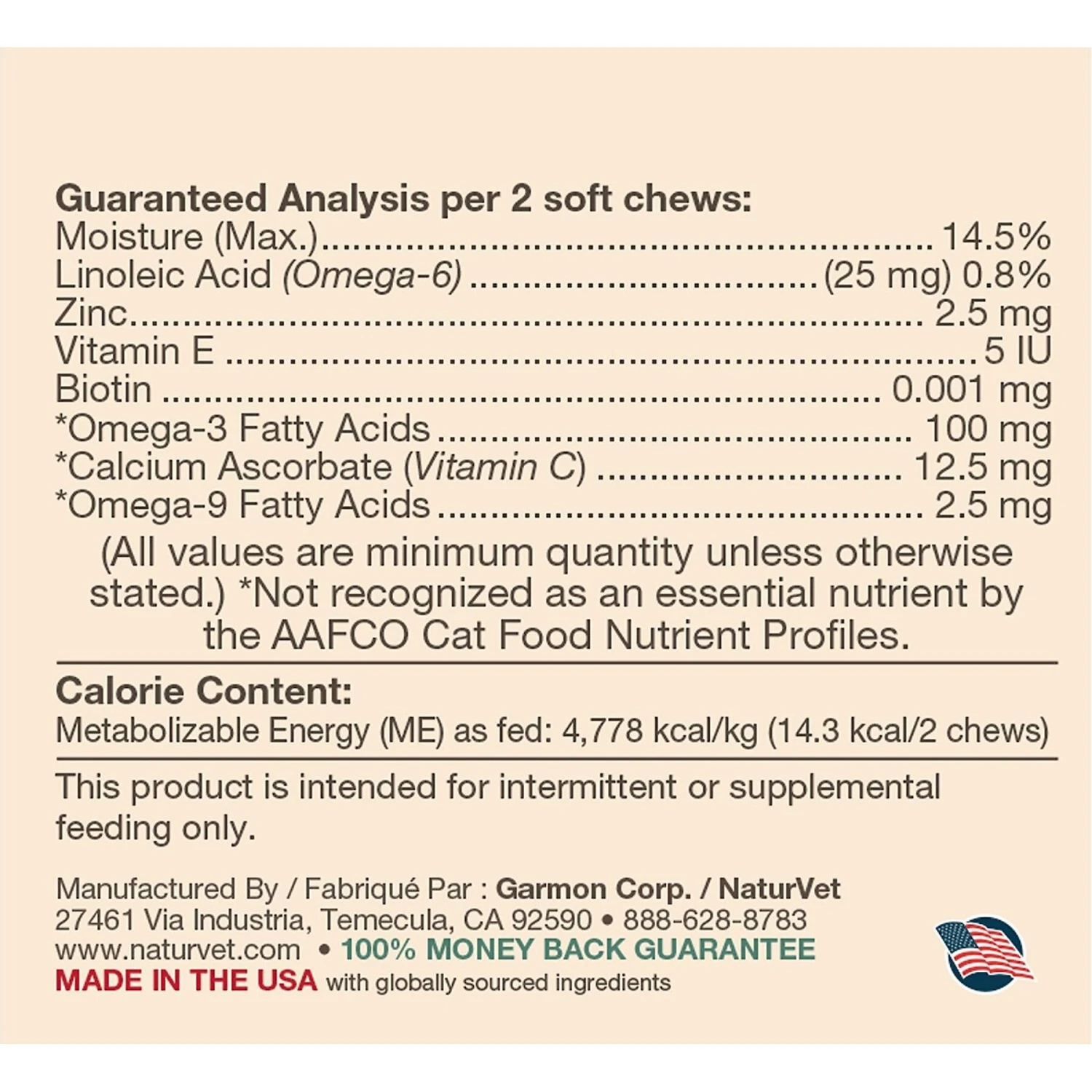 NaturVet Skin & Coat Plus Omegas Soft Chews Skin & Coat Supplement For Cats