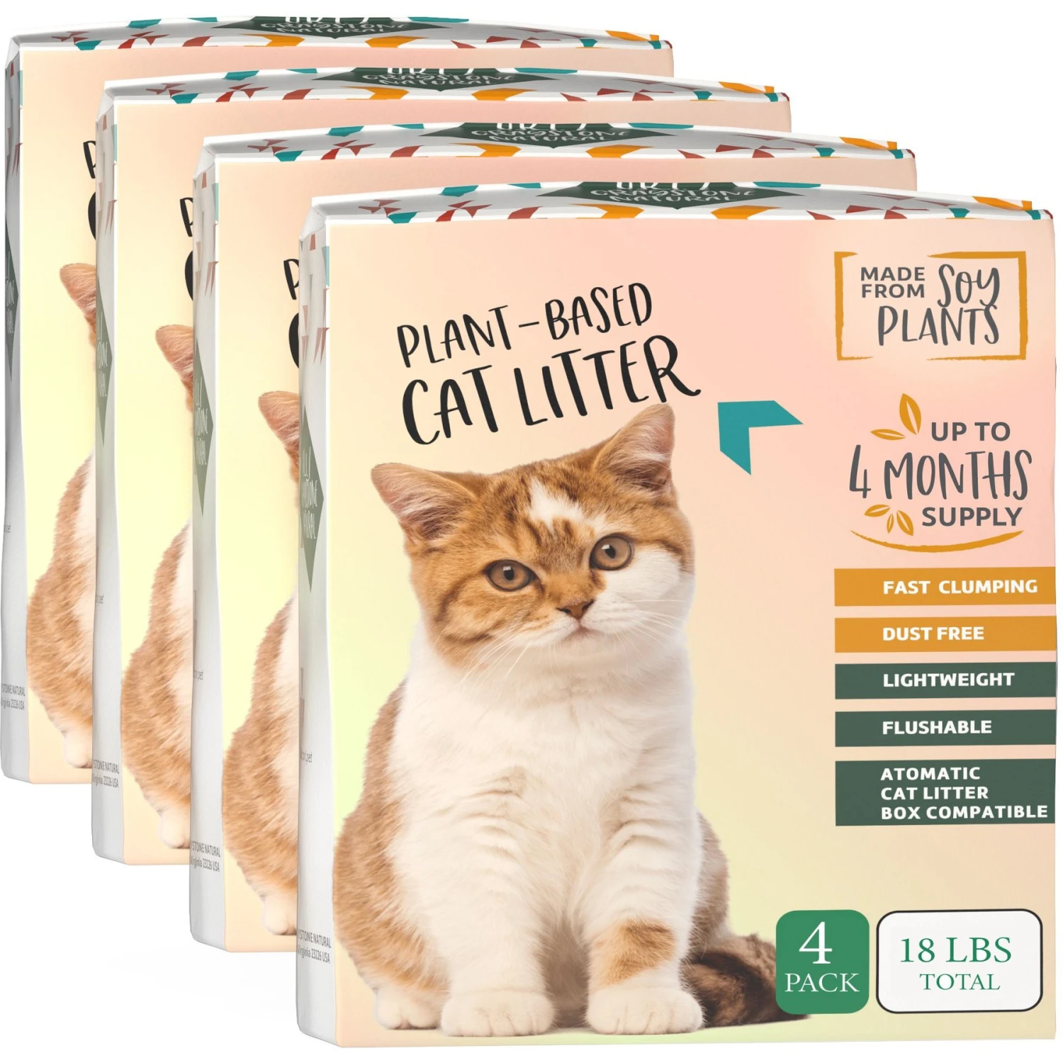 O.R.I./GRAYSTONE NATURAL Granular Tofu Uncented Cat Litter For Automatic Self-cleaning Litter Box Robots, 18-lb Bag, Case Of 4