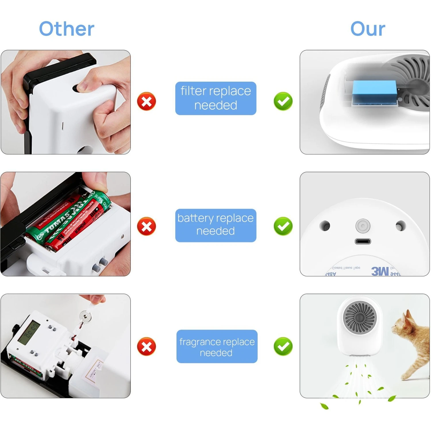 - Environmentally-friendly device does not release chemical sprays or liquids into your space.