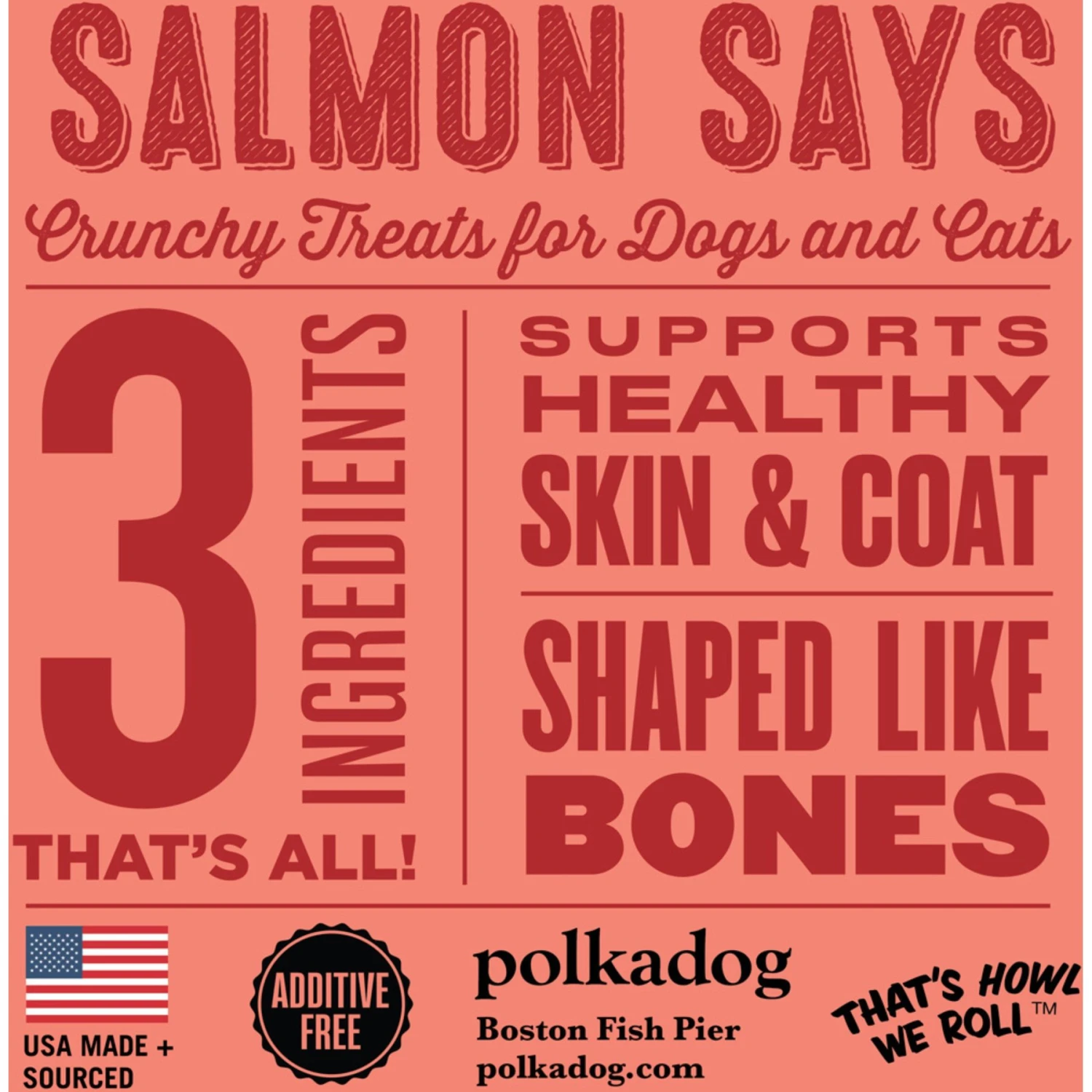 Polkadog Salmon Says Bone-Shaped Crunchy Dehydrated Dog & Cat Treats, 8-oz Bag