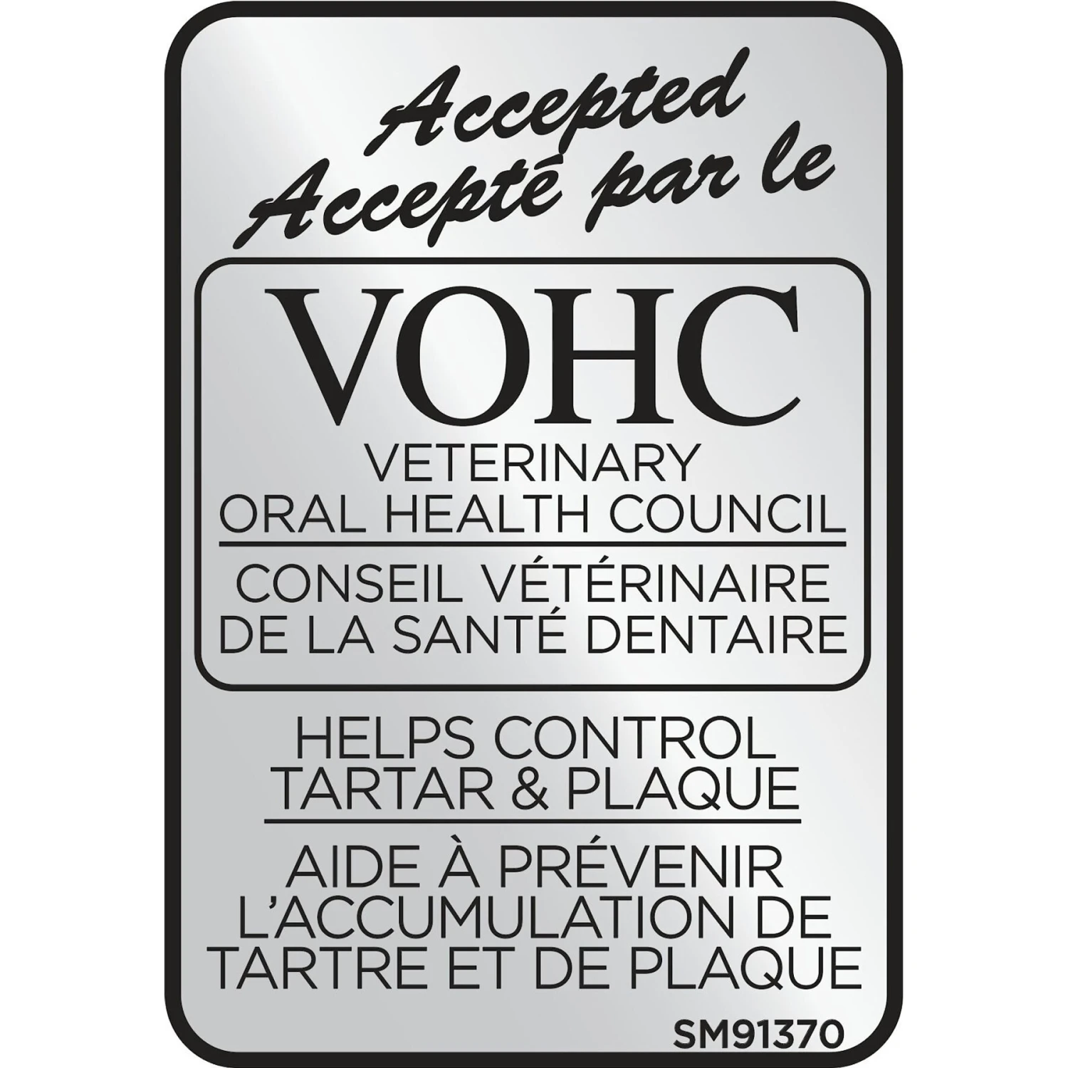 - Stamped with the seal of acceptance by the Veterinary Oral Health Council for helping to control plaque and tartar.