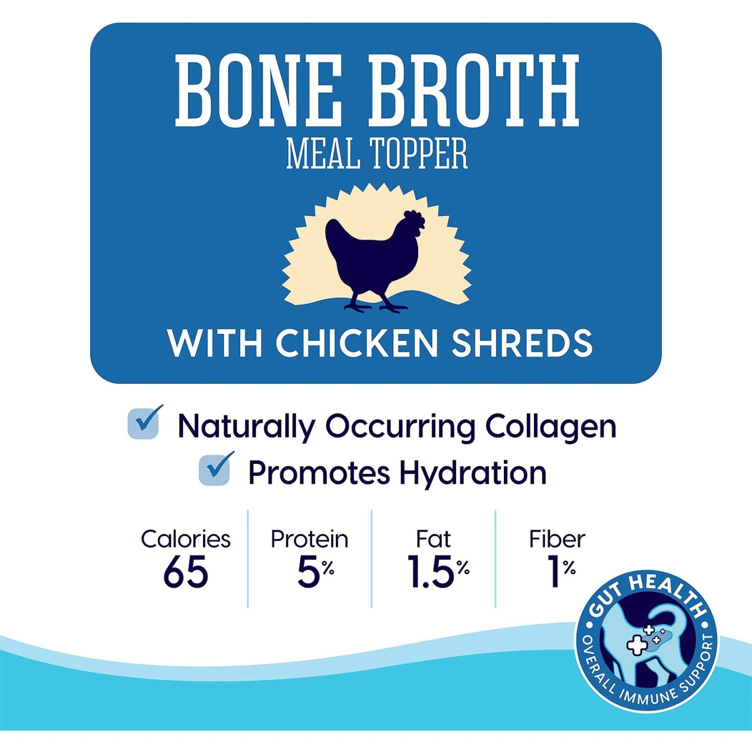 - Crafted with slow-simmered chicken bone broth as the #1 ingredient, which contains naturally occurring collagen protein and amino acids to support your furry friend’s gut health.