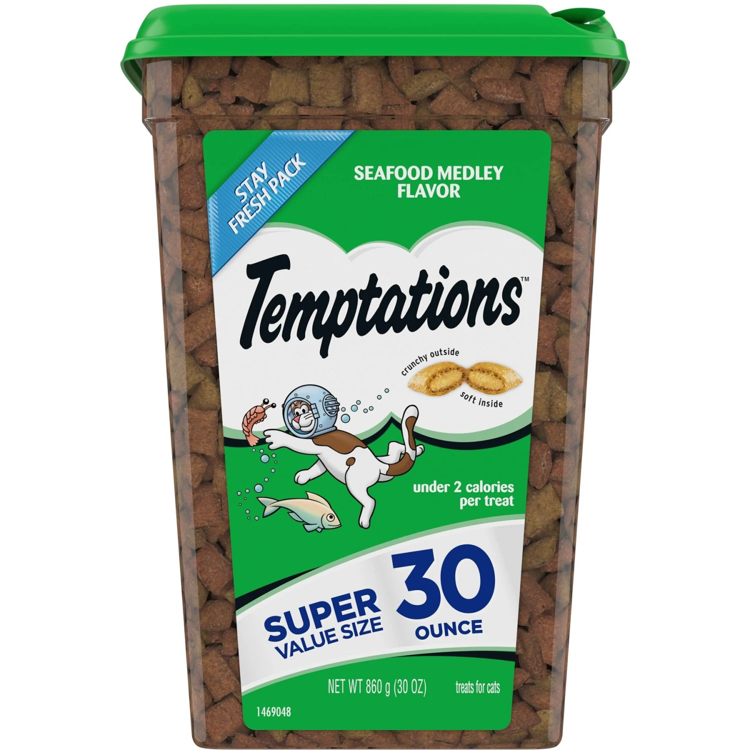 Temptations Classic Seafood Medley Flavor Soft & Crunchy Cat Treats & Temptations MixUps Purricorn Chicken Dairy & Shrimp Flavors Crunchy & Soft Cat Treats, 3-oz Bag