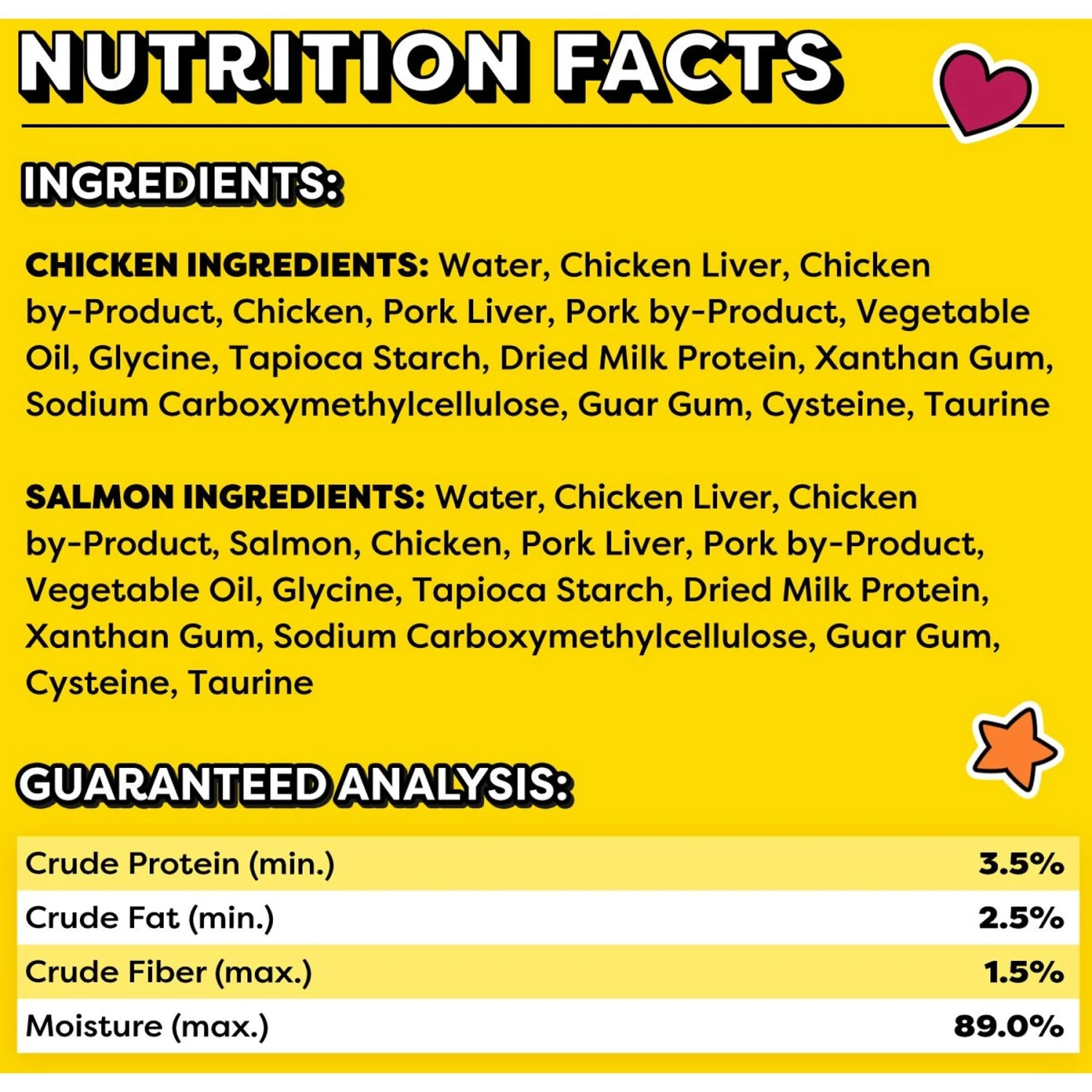 | Flavor | Tuna, Cheese, Salmon, Salmon, Chicken & Tuna Pack, Beef Liver, Beef Liver & Cheese Pack, Salmon & Chicken Pack, Chicken |