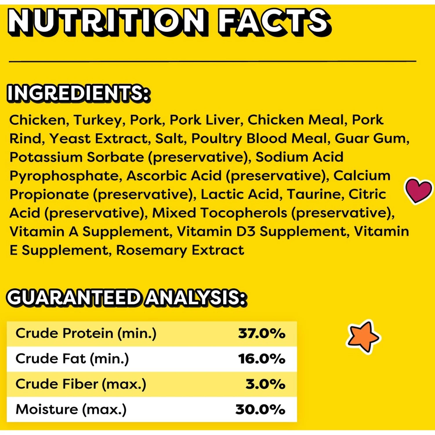 - Each meaty bite is made with irresistible real chicken and turkey.