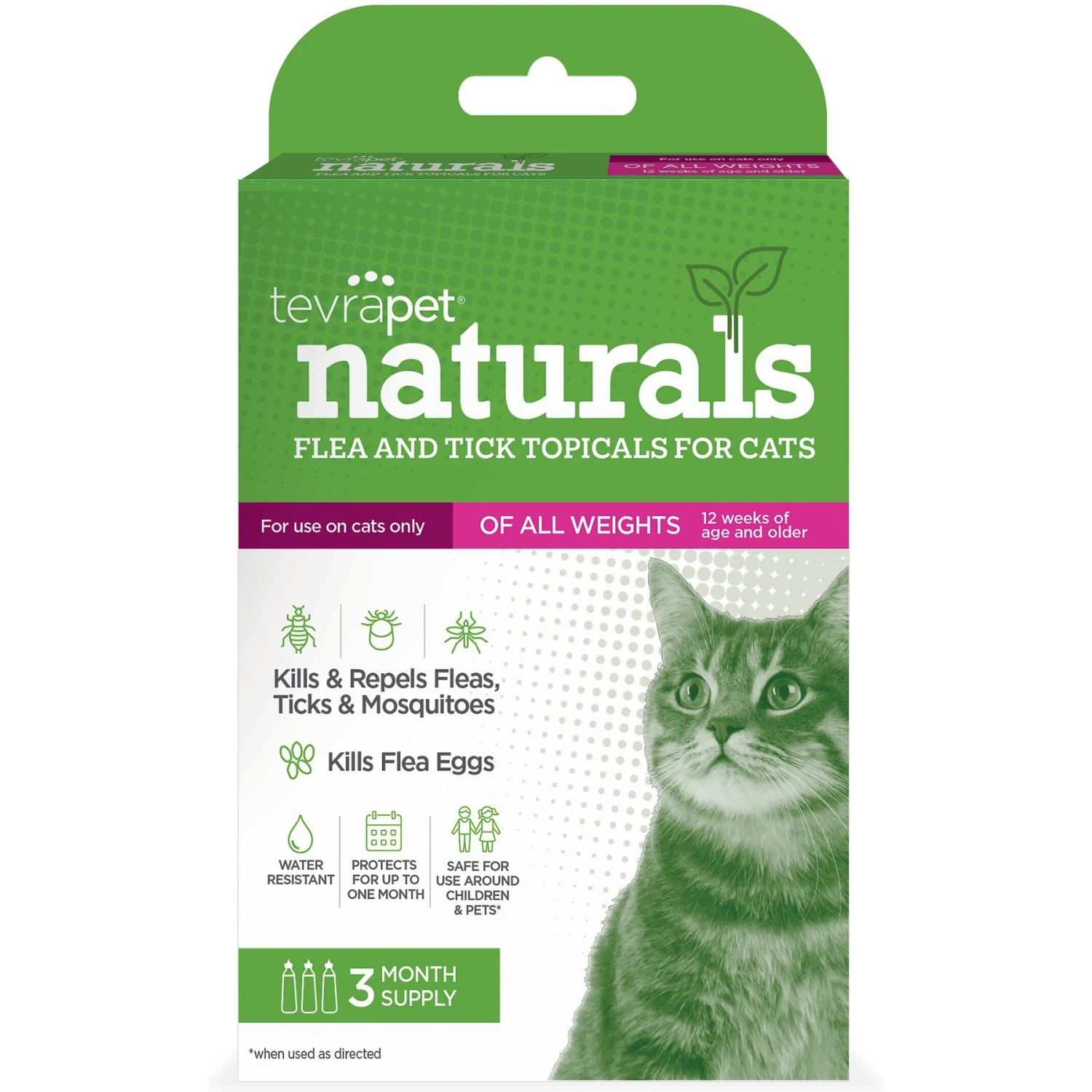 TevraPet Naturals Flea & Tick Topicals For Cats, 3 Doses (3-mos. Supply)