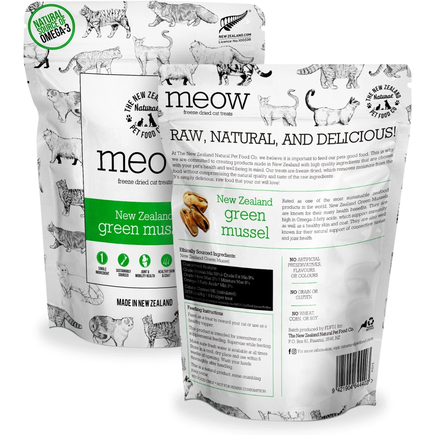 The New Zealand Natural Pet Food Co. Meow Green Lipped Mussels Freeze-Dried Cat Treat, 1.76-oz Bag