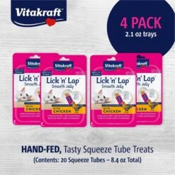 Vitakraft Lick ‘n’ Lap Jelly Chicken Low Calorie Interactive Wet Cat Treat?, 2.1-oz Pouch, Pack Of 4