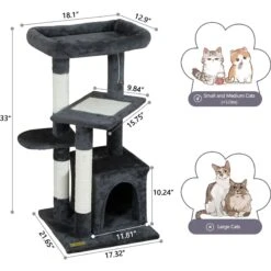 Coziwow By Jaxpety Faux Fur Cat Tree Tower & Condos With Scratch Posts, 34-inch, Grey