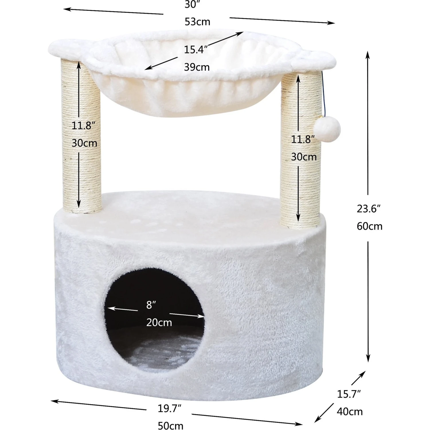 - Durable materials including plush fabric, sisal rope and hardboard provide fun and amusement.