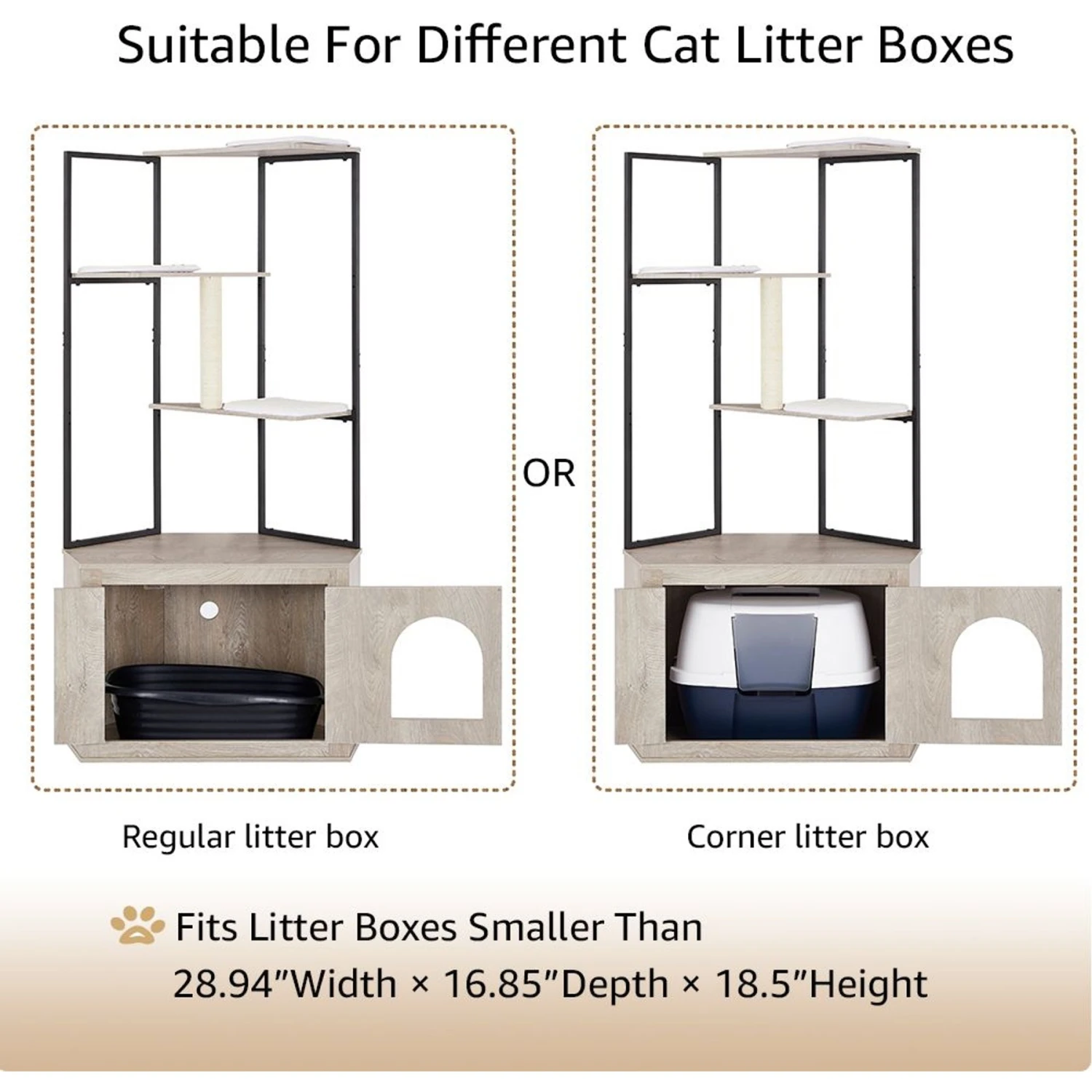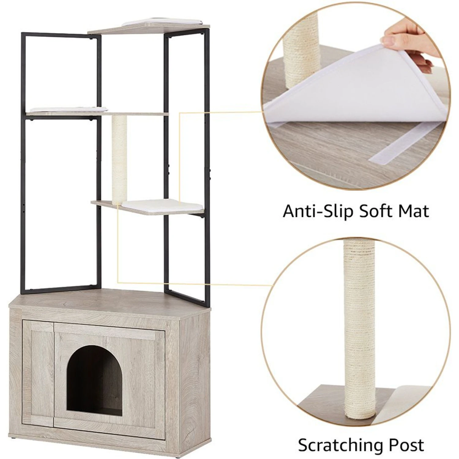 Unipaws Corner Box Enclosure With Cat Tree Tower Cat Litter, Weathered Grey, Medium