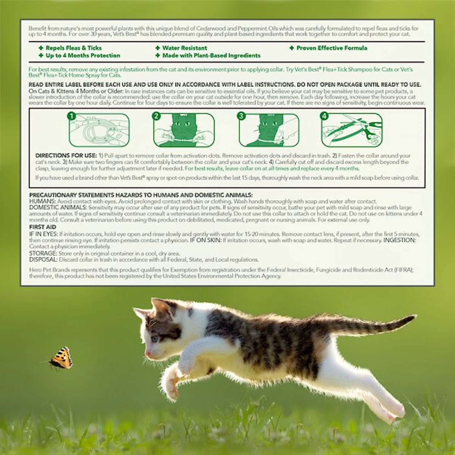 - Repels fleas and ticks and protects your cat companion from the unpleasant itching and side effects associated with flea infestations. For all-over protection, use in conjunction with Vet’s Best Flea & Tick Shampoo for Cats or Vet’s Best Flea & Tick Home Spray for Cats (sold separately).