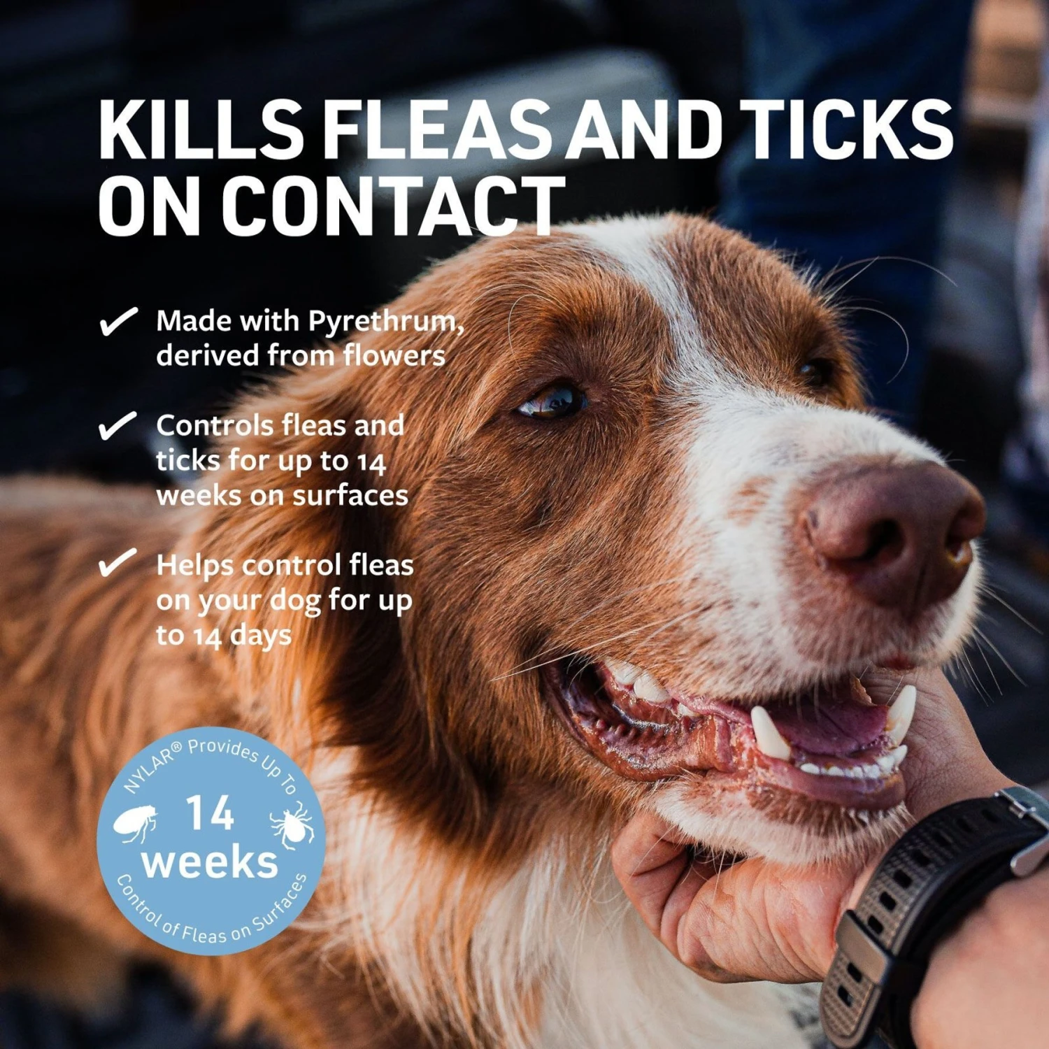 - This convenient spray works to kill fleas and ticks on contact and continues to eliminate unwanted pests for up to two weeks.
