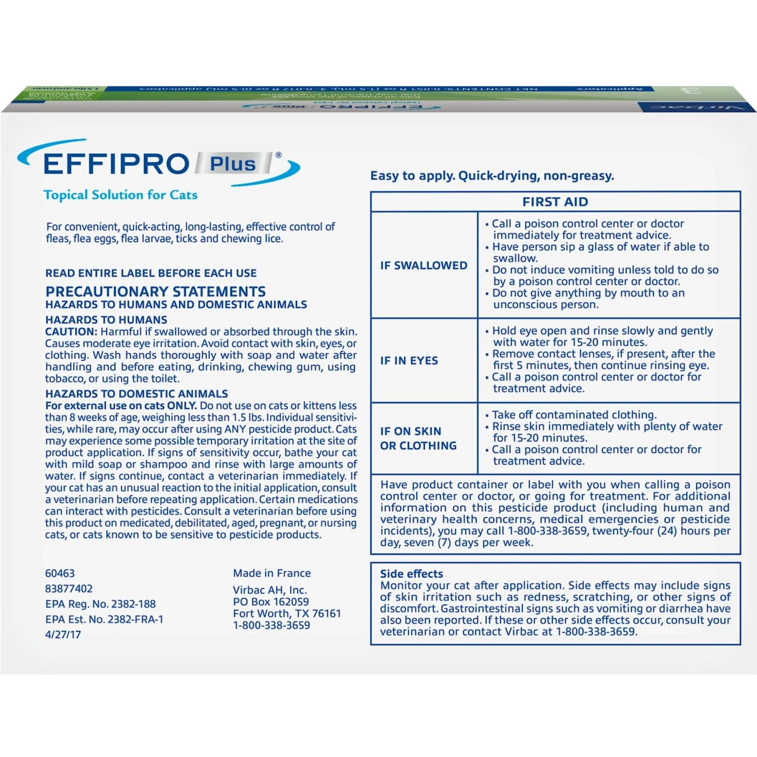 Virbac EFFIPRO Flea & Tick Spot Treatment For Cats, Over 1.5 Lbs