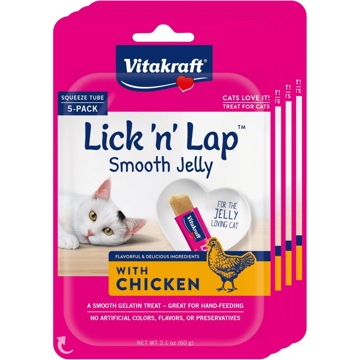 Vitakraft Lick ‘n’ Lap Jelly Chicken Low Calorie Interactive Wet Cat Treat?, 2.1-oz Pouch, Pack Of 4