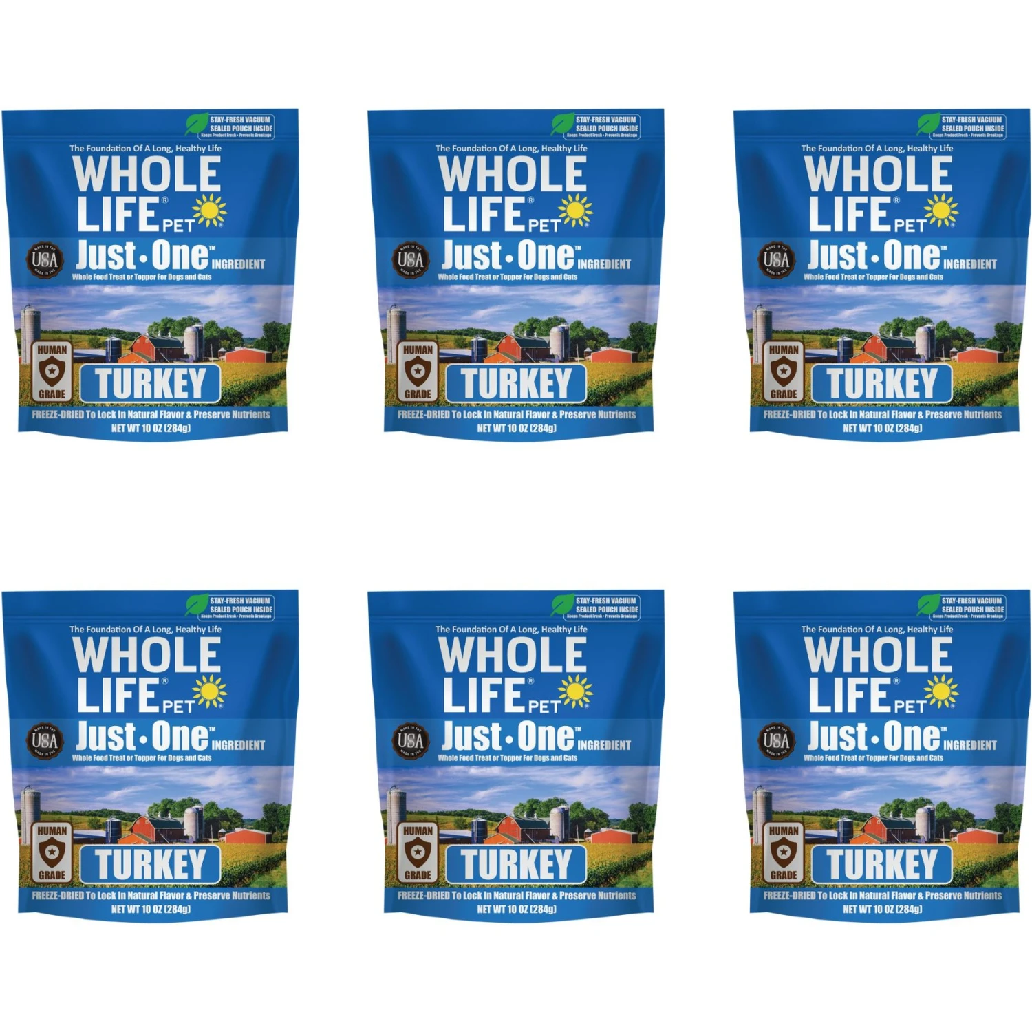 - Whole Life Just One Turkey Value Pack Freeze-Dried Dog and Cat Treats are made and sourced in the USA from pure, human-grade turkey. The treats are designed for pups and kitties that are finicky eaters, have sensitive stomachs, or are overweight.