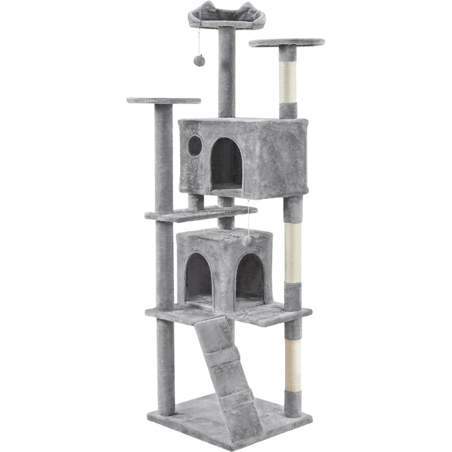 - Features 3 top perches, 2 enclosed condos, and 3 sisal rope scratching posts.