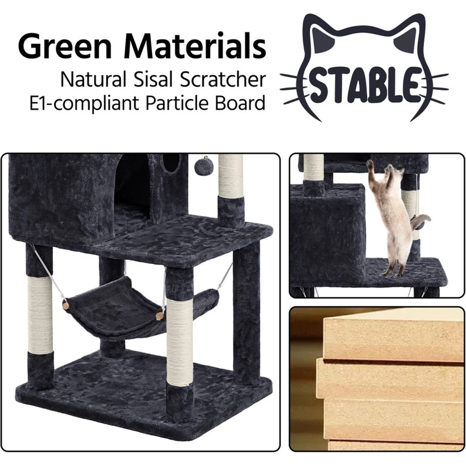 - Features multiple tiers and structures for your kitties to play and lounge.
